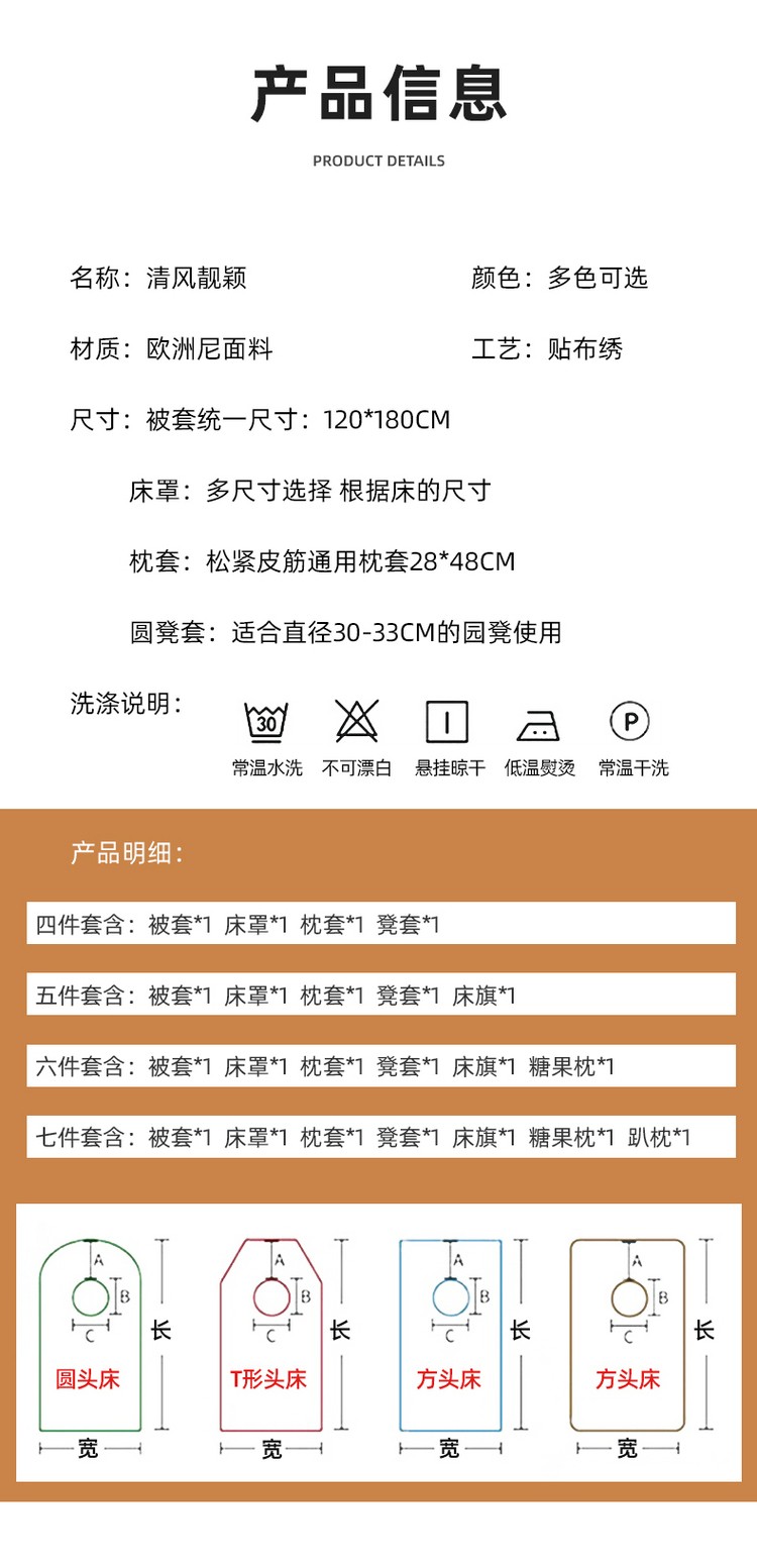 75*190圆头床罩六件套