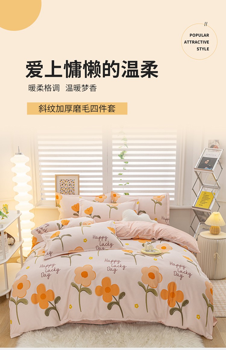 商品名称:棠颂 2023新款高克重加厚植物羊绒斜纹磨毛四件套 如愿