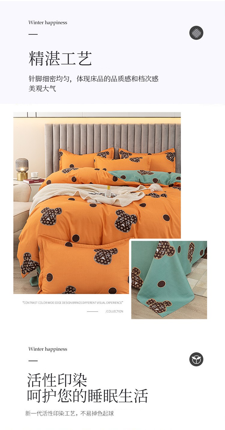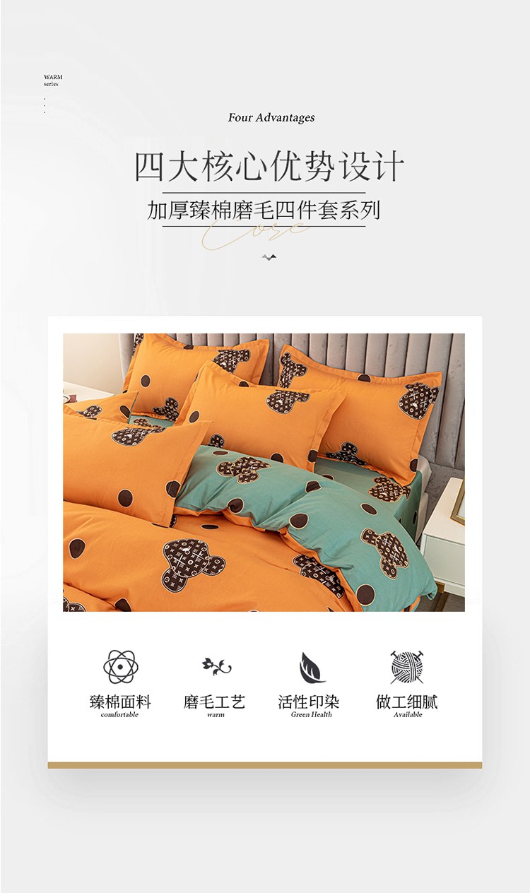 商品名称:棠颂 2023新款高克重加厚植物羊绒斜纹磨毛四件套 布丁熊