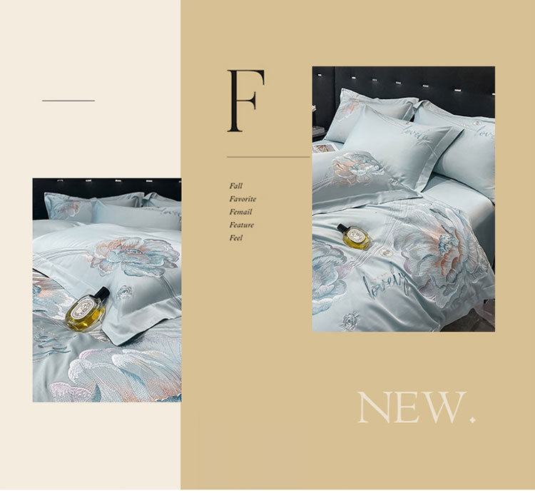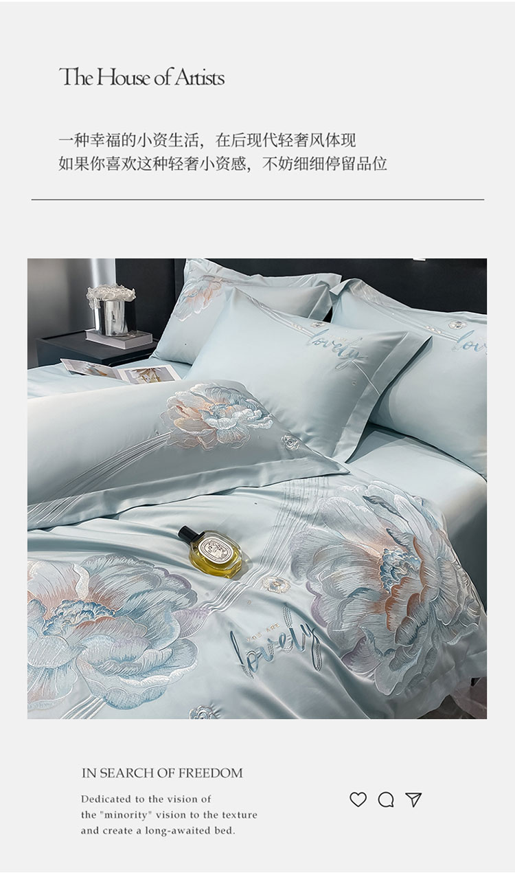 (总)魅都 2025新款100S全棉刺绣款四件套-心恋,米白,飘蓝,浅紫,松绿