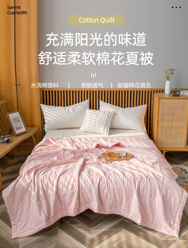商品名称:鸣升 新款水洗棉新疆棉花夏凉被子被芯 粉小格