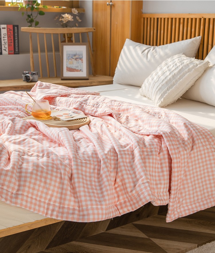 鸣升 新款水洗棉新疆棉花夏凉被子被芯 粉小格