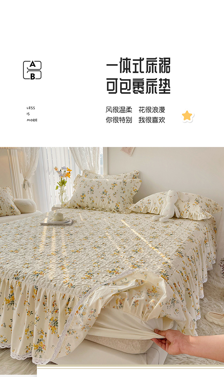 当前位置: 91家纺网 > 商品网购 > 床品套件 > 四件套 > 全棉普通四件套 > 忘忧草2023新款全棉床笠式床裙夹棉款床笠四件套 温迪