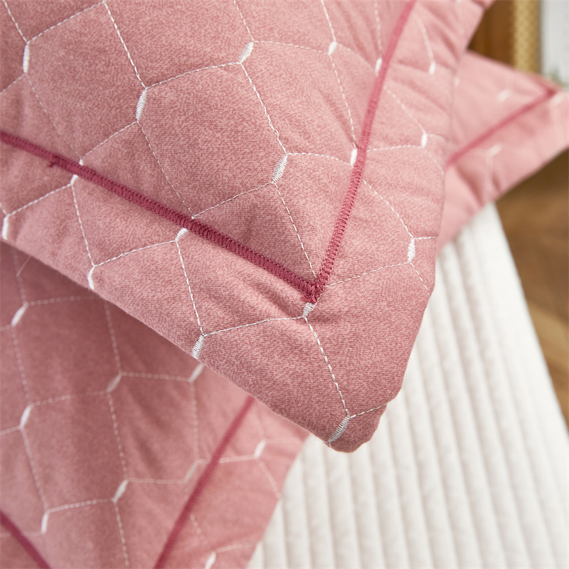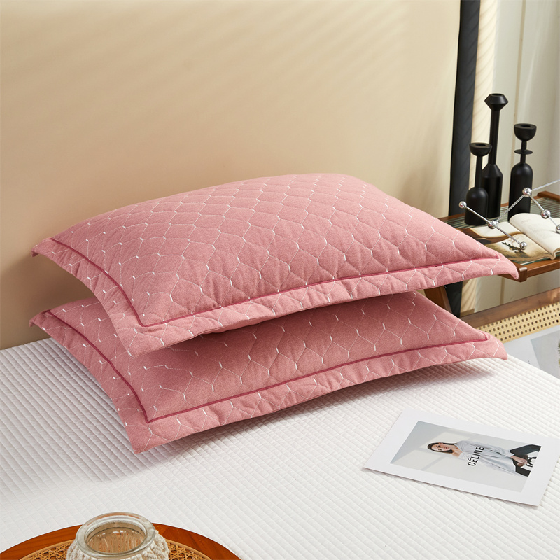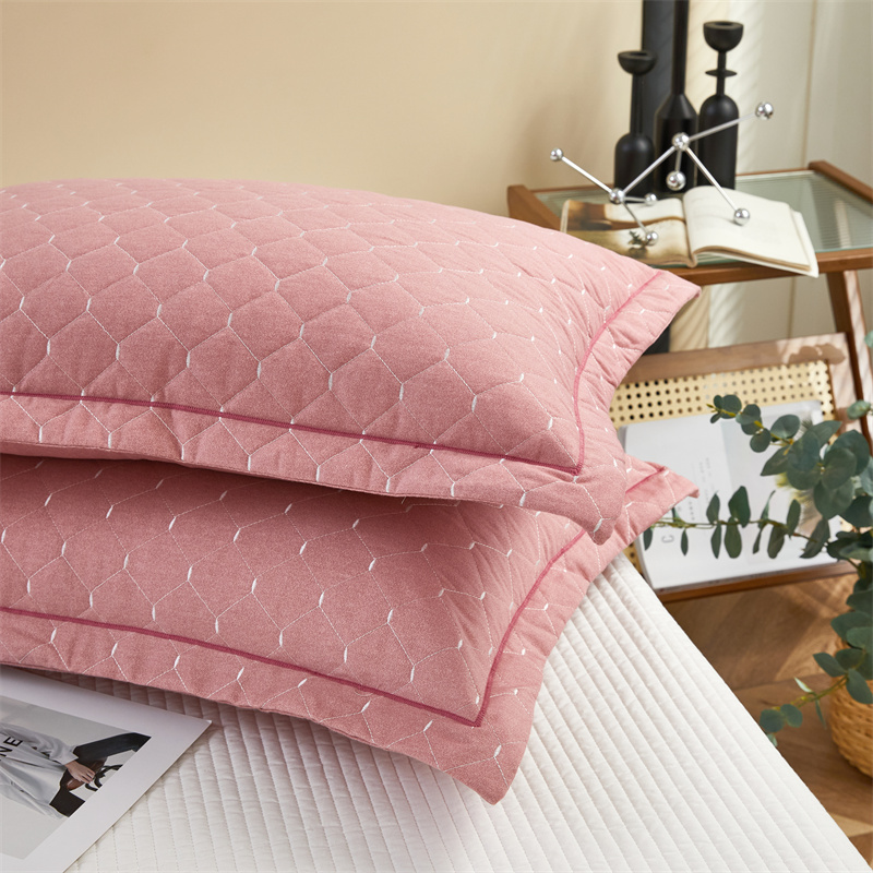 杜先生 2023新款纯色活性磨毛全棉刺绣夹棉枕套一对 米粒红豆沙