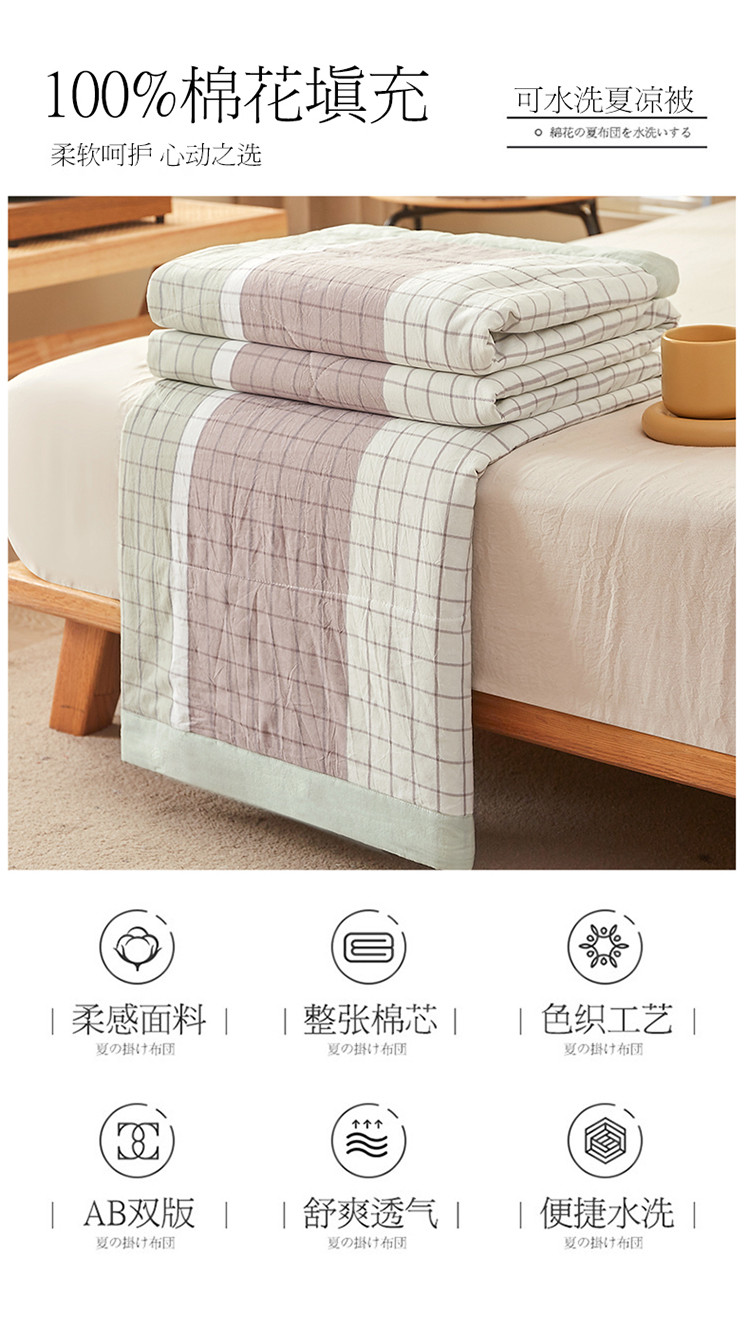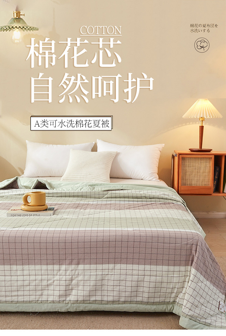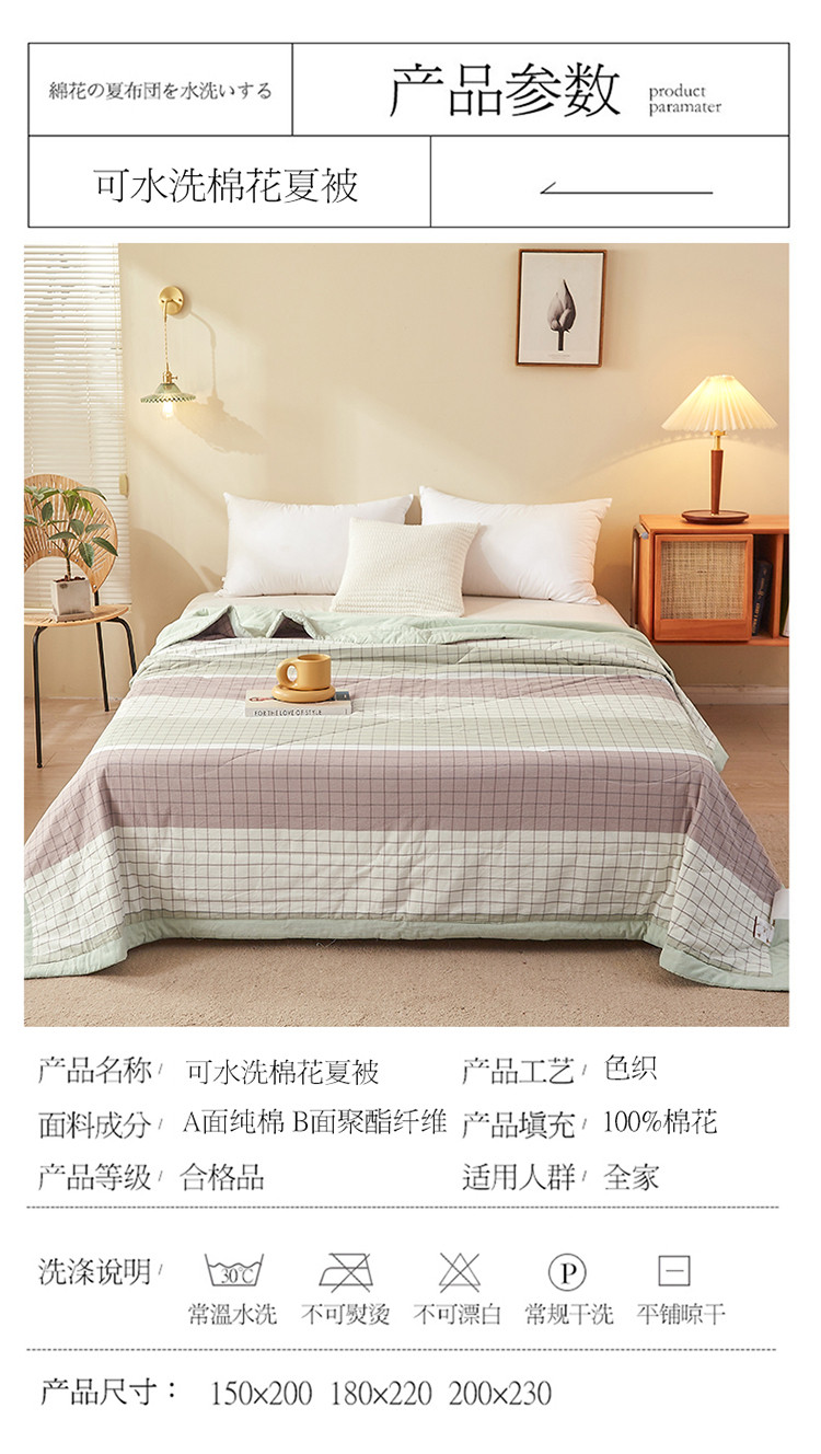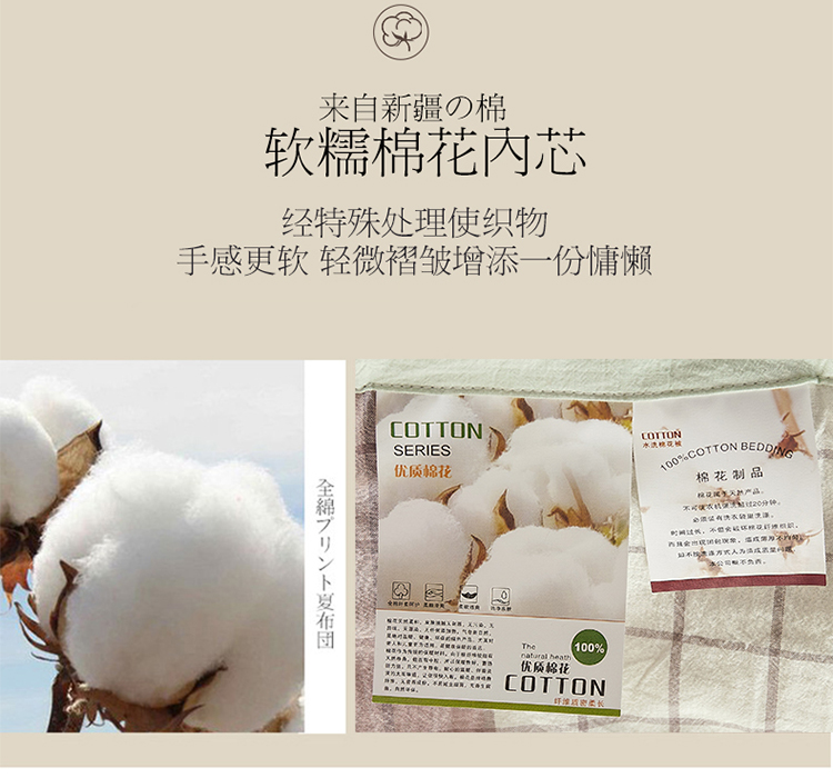 商品名称:悠米悠家 2025新款新疆棉花被棉花夏被水洗棉夏凉被 浅条小格