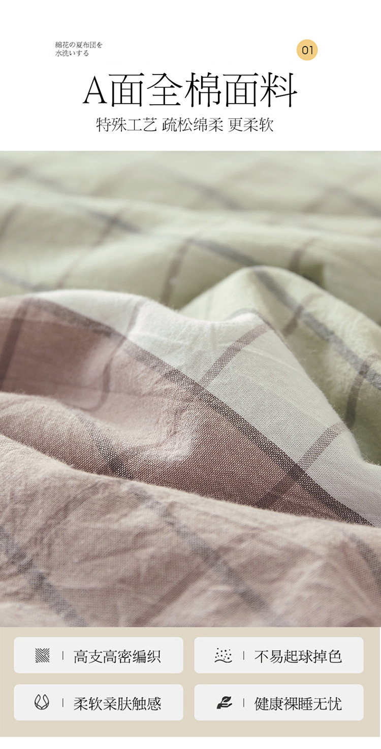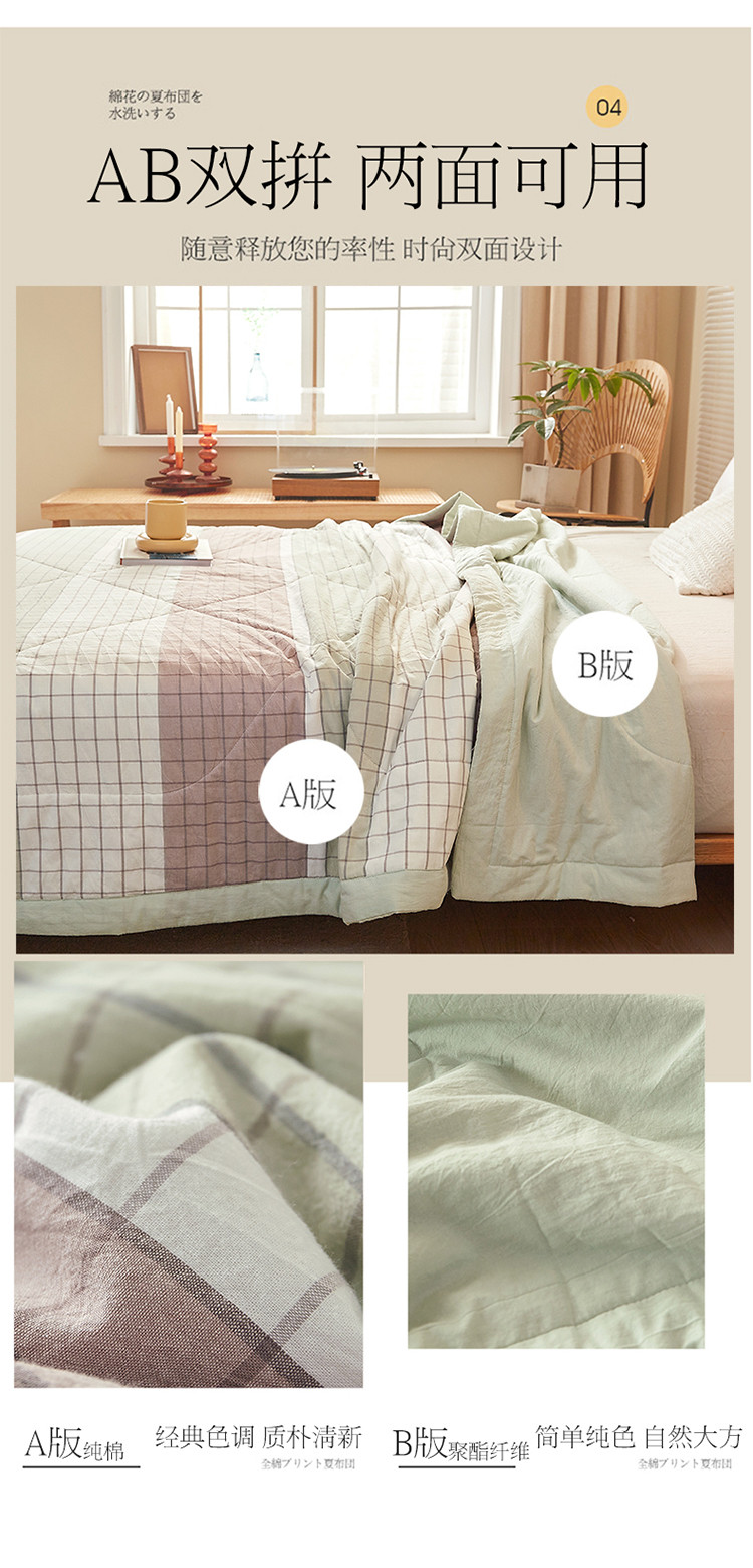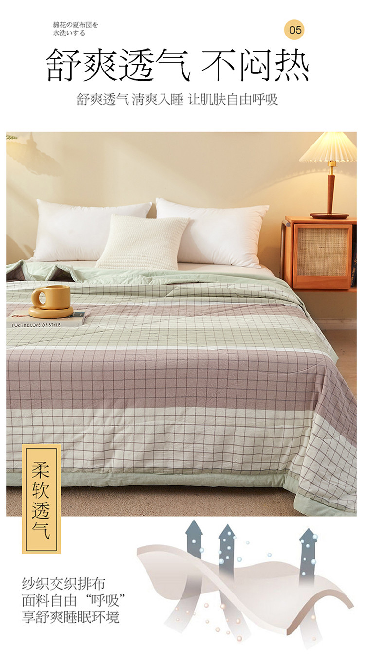 商品名称:悠米悠家 2025新款新疆棉花被棉花夏被水洗棉夏凉被 浅条小格