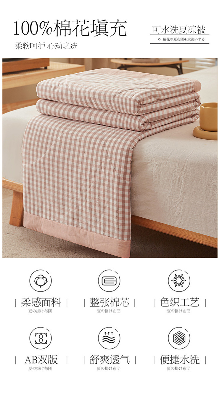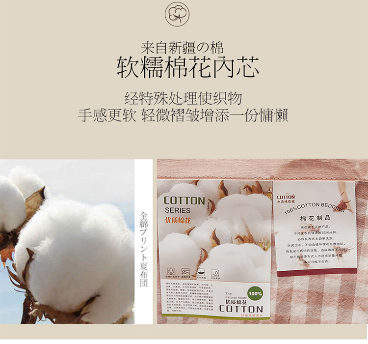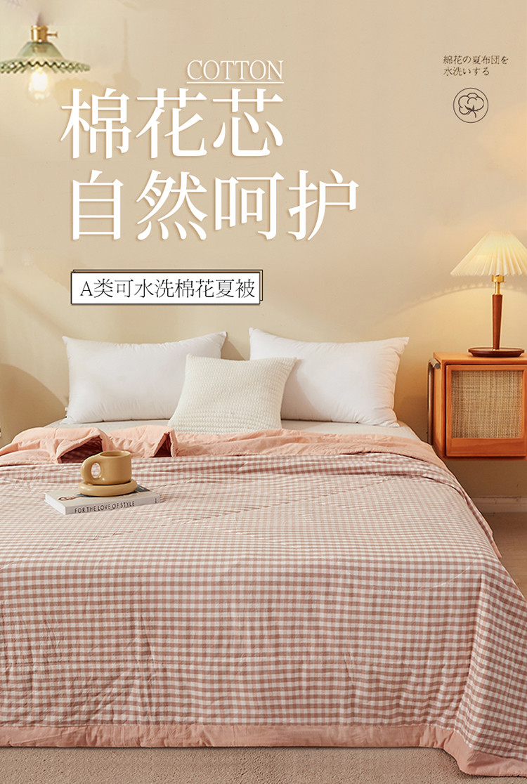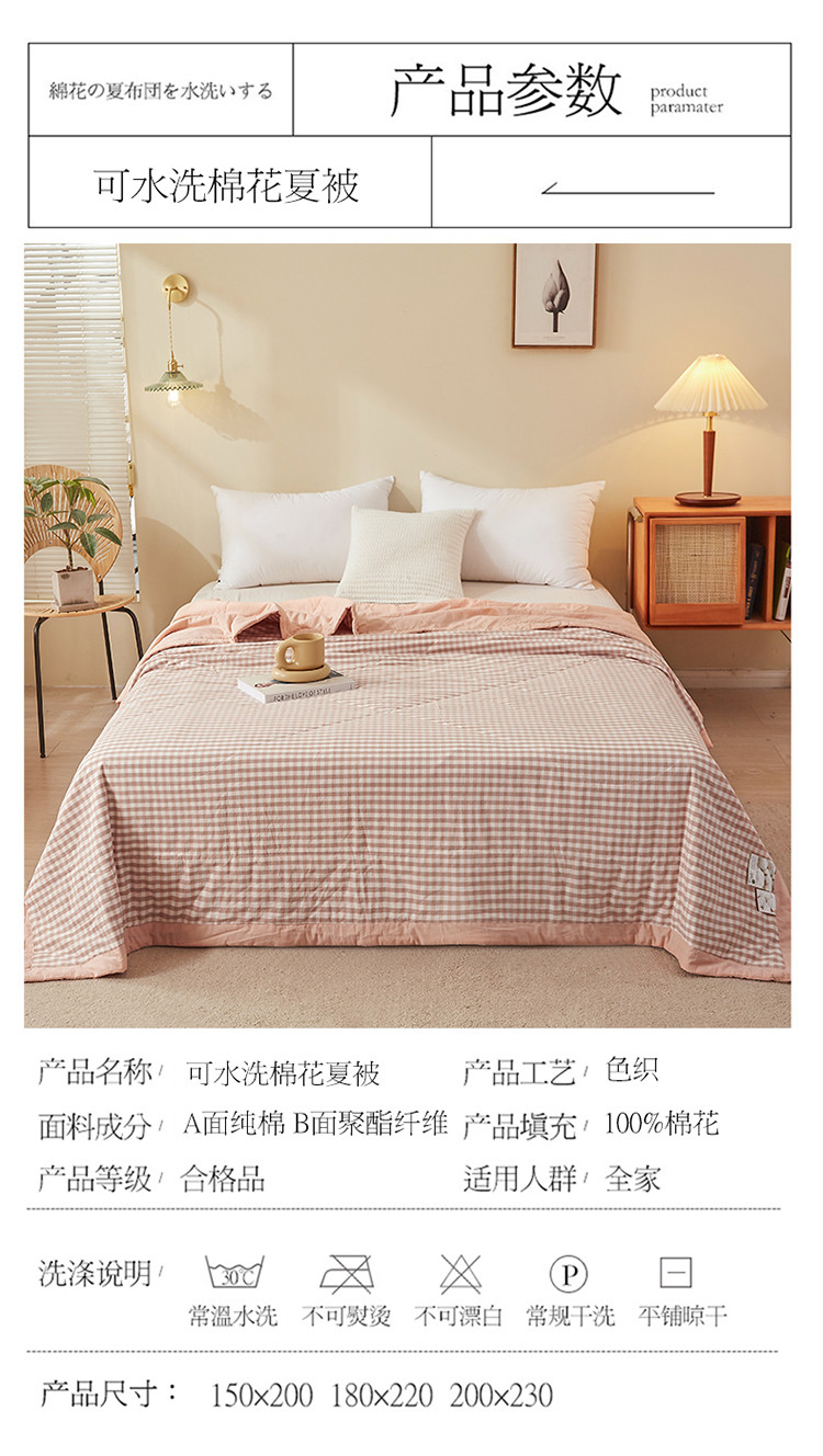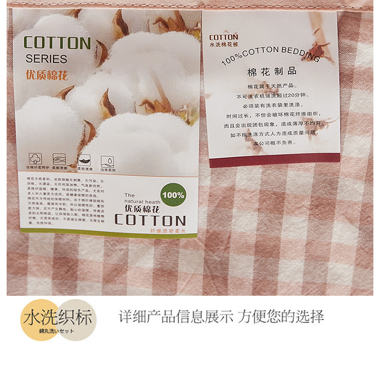 商品名称:悠米悠家 2025新款新疆棉花被棉花夏被水洗棉夏凉被 粉小格
