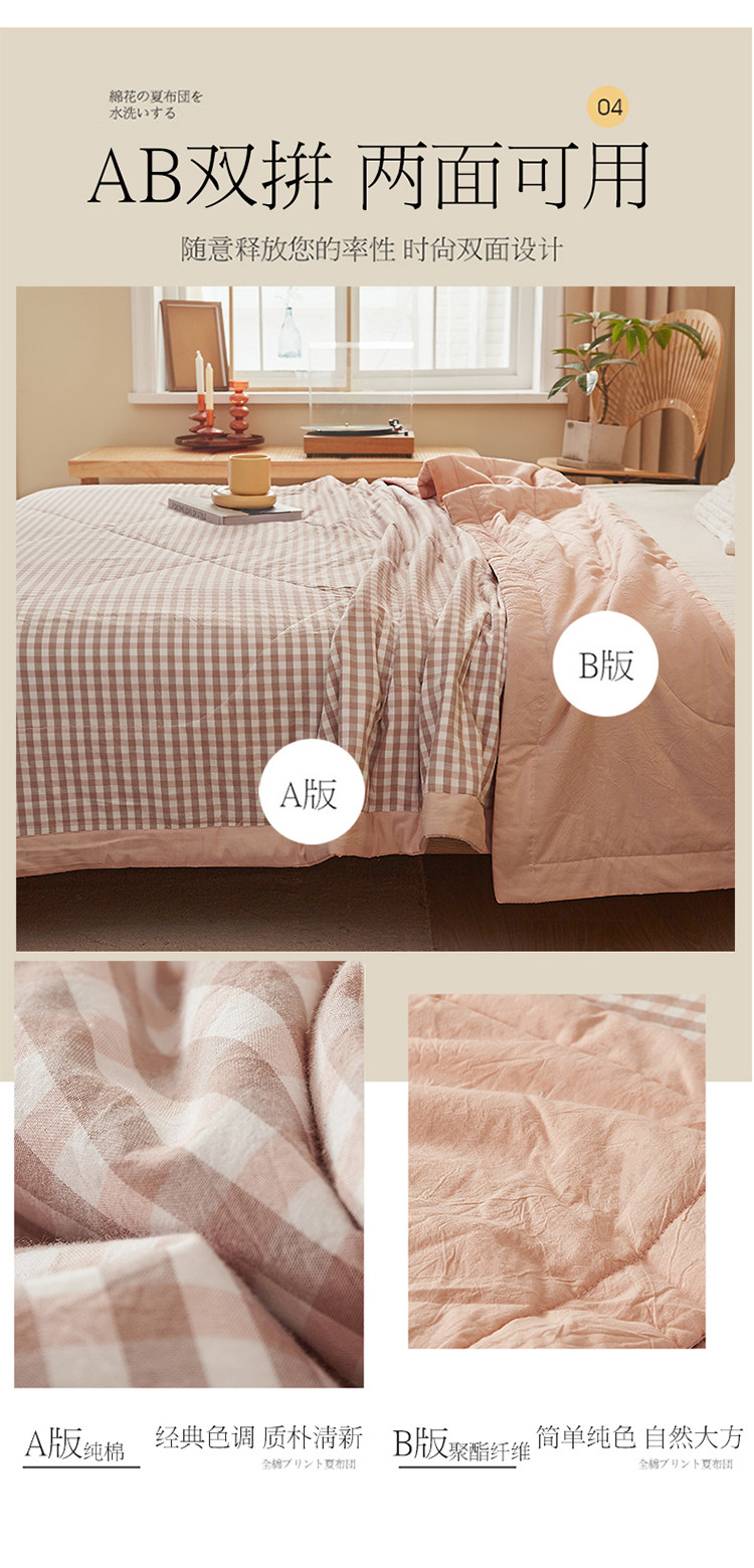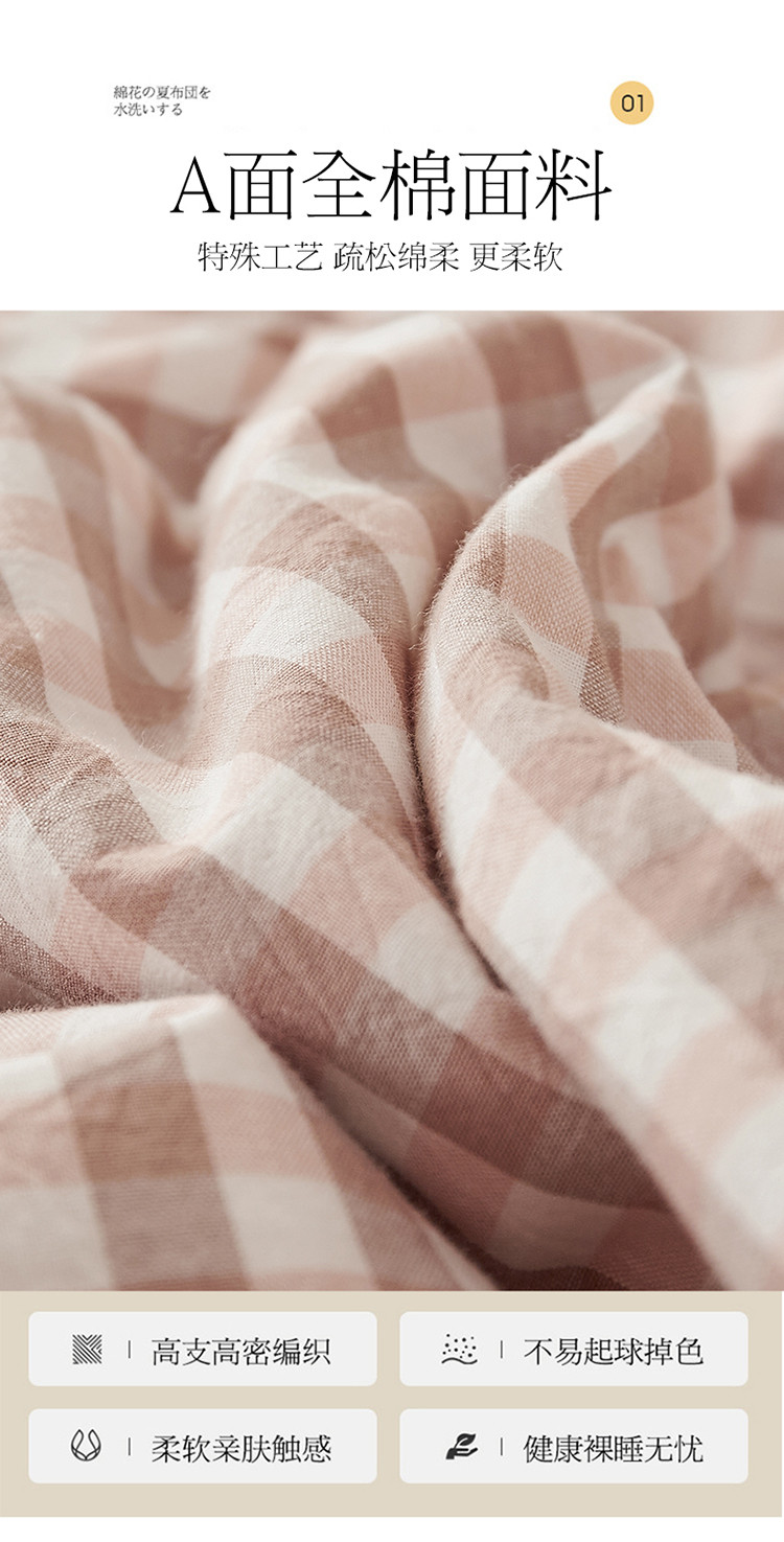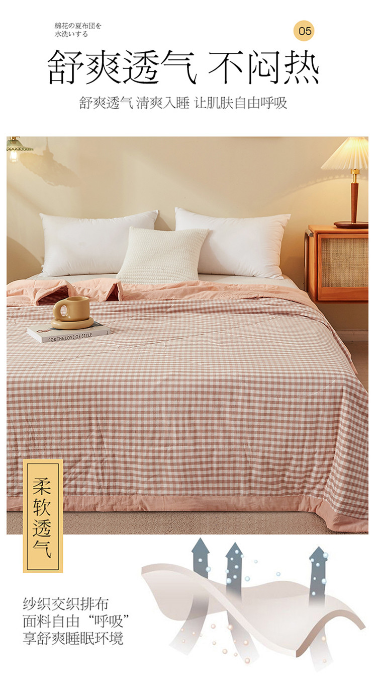商品名称:悠米悠家 2025新款新疆棉花被棉花夏被水洗棉夏凉被 粉小格