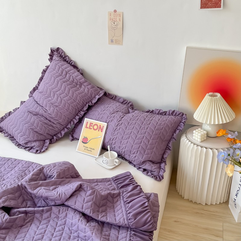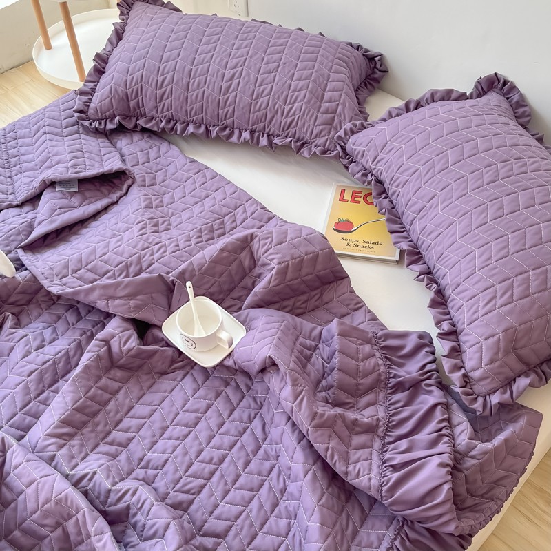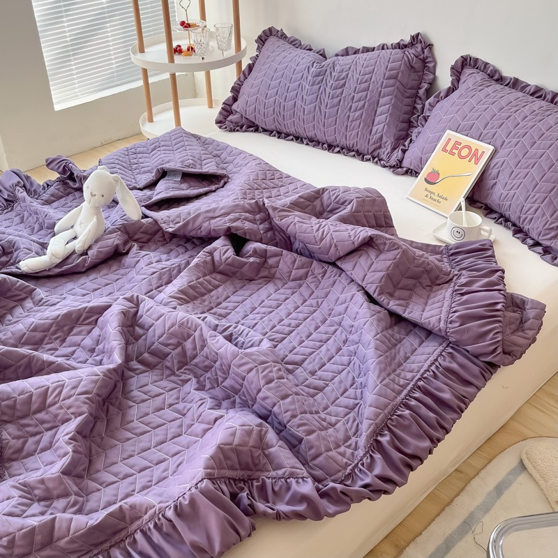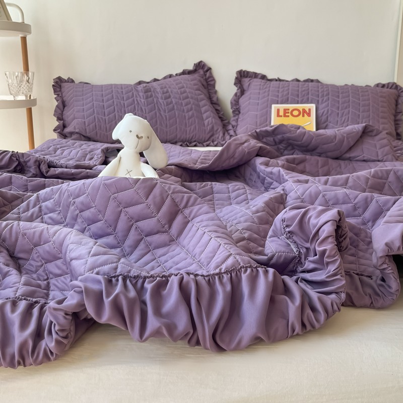 乐卧家居 2026新款韩国INS风简约时尚绗缝荷叶边夏被 紫色,紫色
