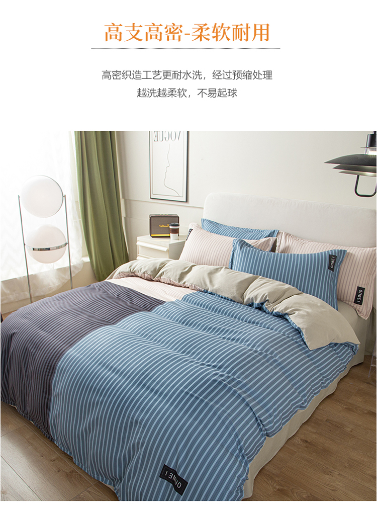 (总)宏源家纺 2023新款天丝棉条纹系列四件套,粗黑条,粗橘条,粗蓝条,粗绿条,粗紫条,细黑白条,细灰条,细蓝条,细绿条,细天蓝条