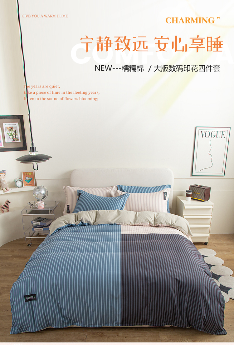 商品名称:宏源 2023新款大版数码印花糯糯棉四件套 华尔街