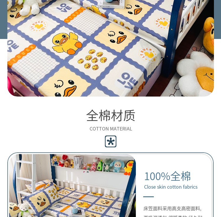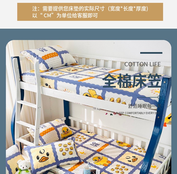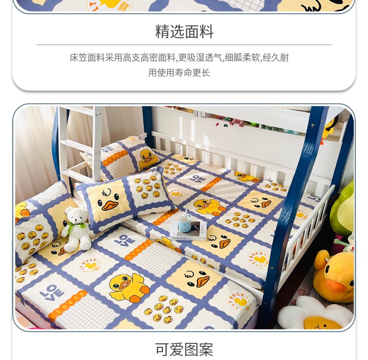 • 91家纺网 家纺一手货源 找家纺 小虾米 2023新款上下铺小黄鸭系列全棉床笠(可定制) 英伦格调