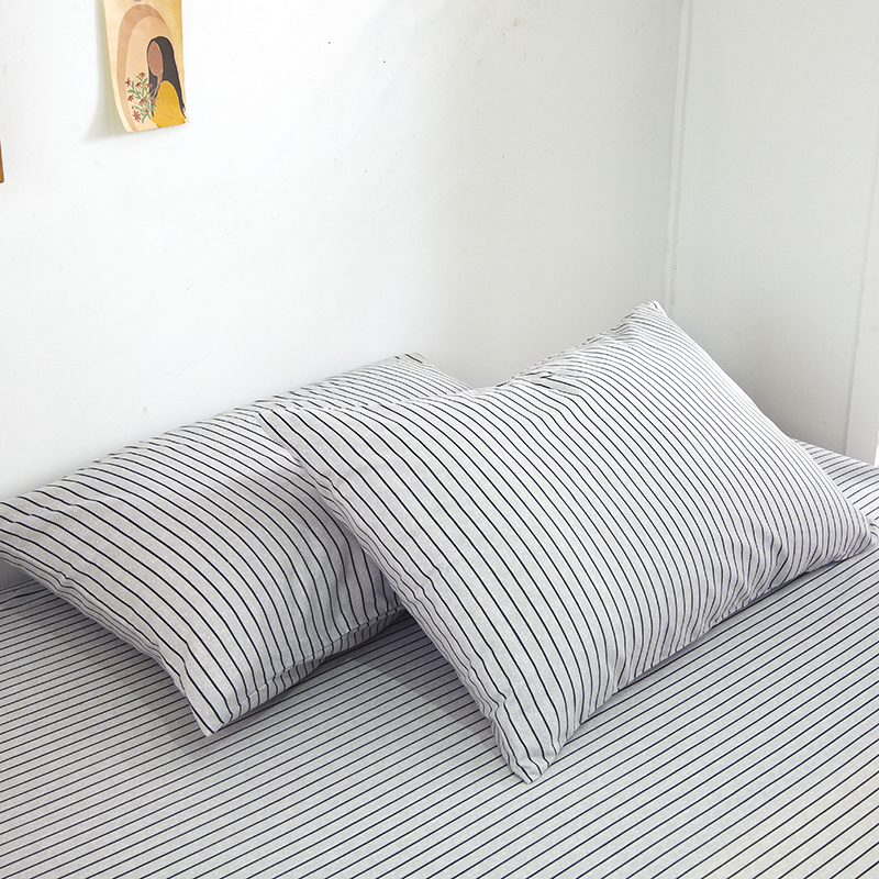 曼璐单人枕套加厚水洗棉日式无印风格子条纹枕芯套48*74cm 白蓝条