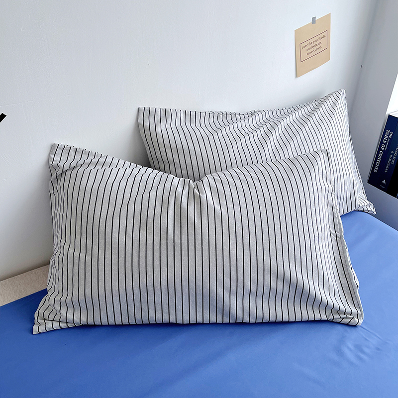 商品名称:曼璐单人枕套加厚水洗棉日式无印风格子条纹枕芯套48*74cm 白蓝条