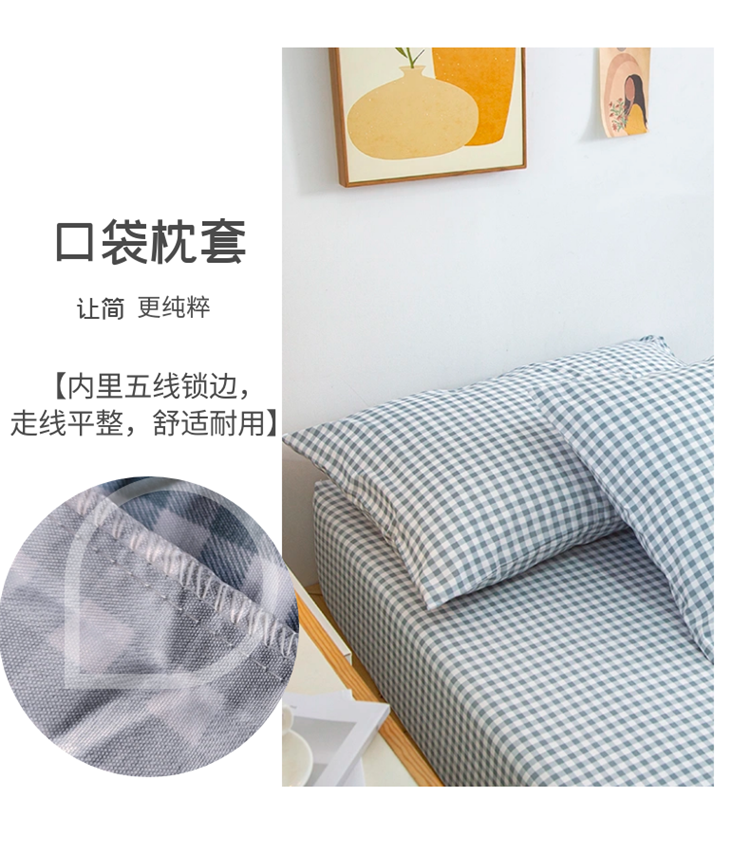 (总)曼璐家纺 2025新款105克加厚水洗棉纯色格子无印风学生床笠外贸直播爆款,黑白条,浅灰,深灰,雾蓝,米小格,玉色,芝士黄,黄小格,姜黄,卡其,洛克兰,蓝小格