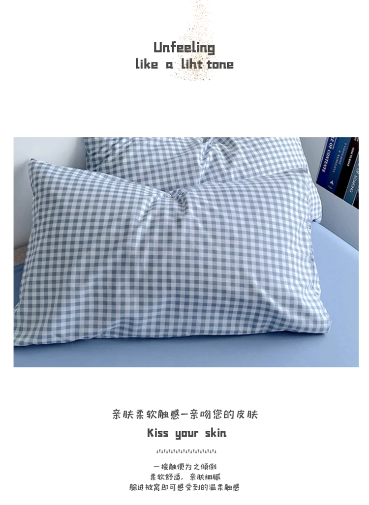 商品名称:曼璐单人枕套加厚水洗棉日式无印风格子条纹枕芯套48*74cm 蓝小格