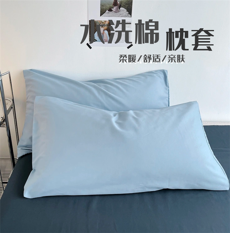 商品名称:曼璐单人枕套加厚水洗棉日式无印风格子条纹枕芯套48*74cm 月光雾蓝
