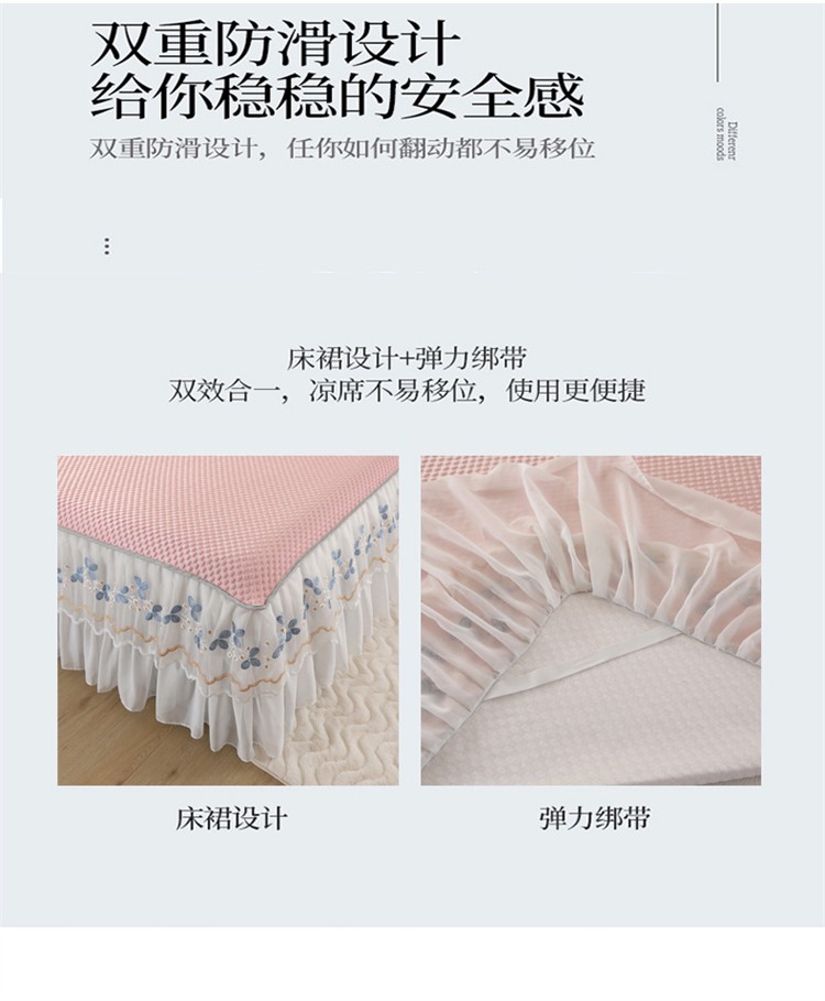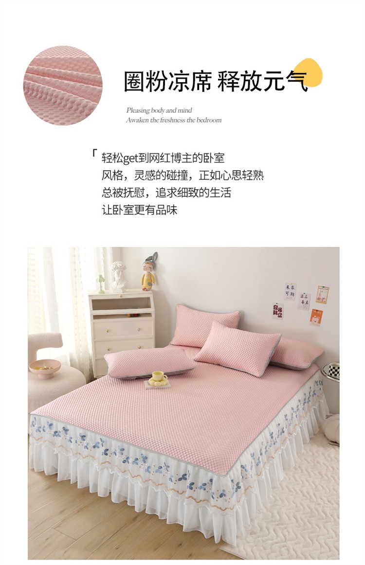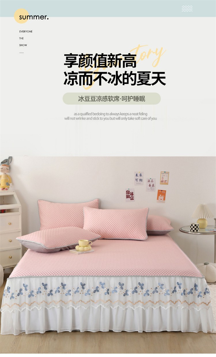(总)能好家纺 2025新款双层刺绣花边冰豆豆席华夫格pe凉感席凉席,豆沙,灰,咖,蓝,绿