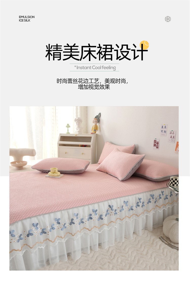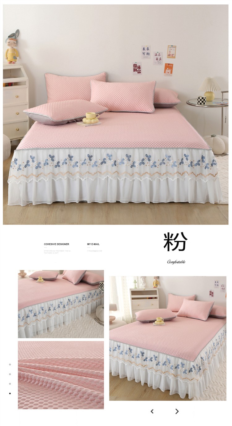 能好家纺 2024新款600克全PE材质3D冰豆豆绣花床裙款 绣花 粉