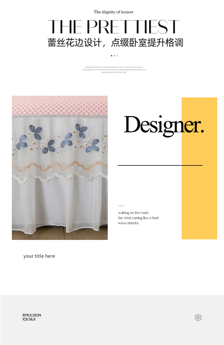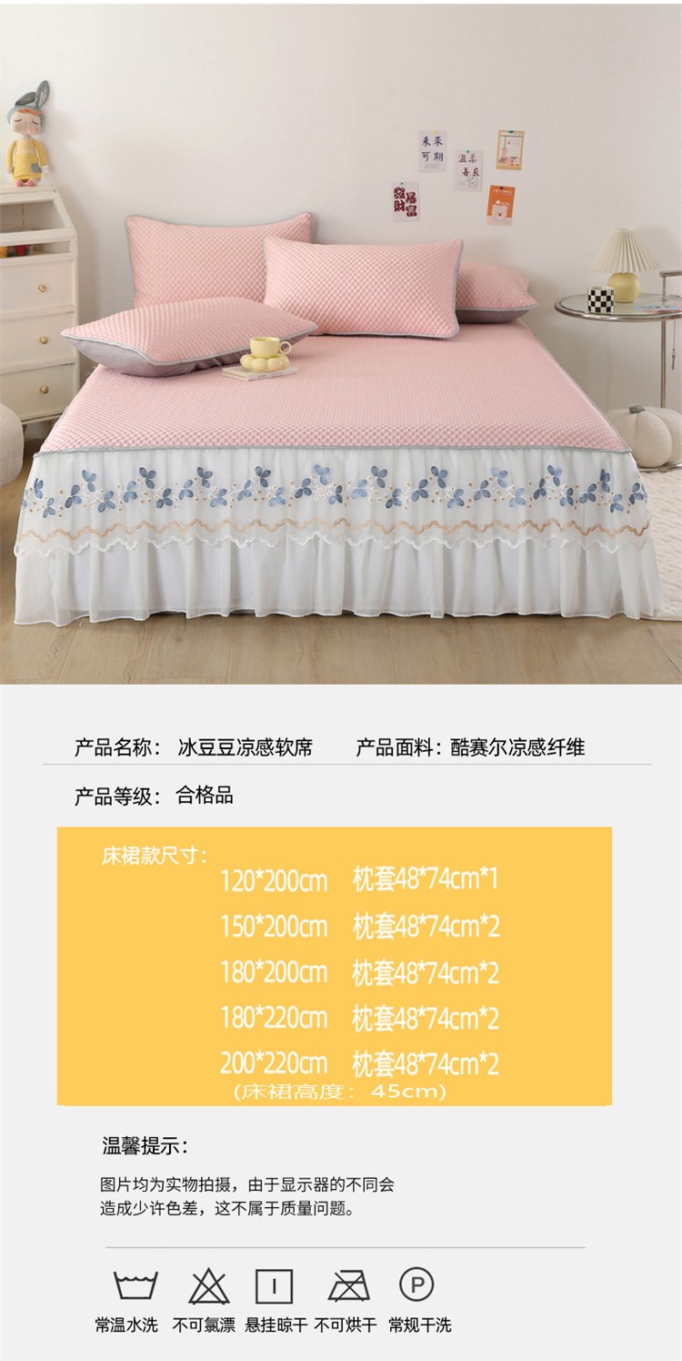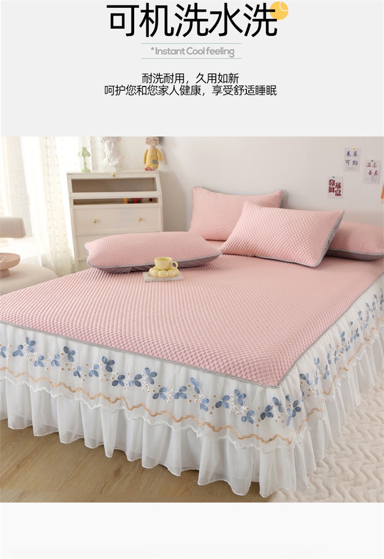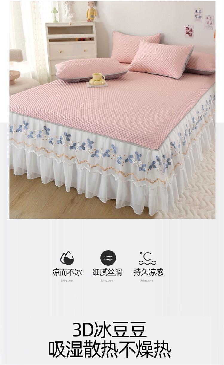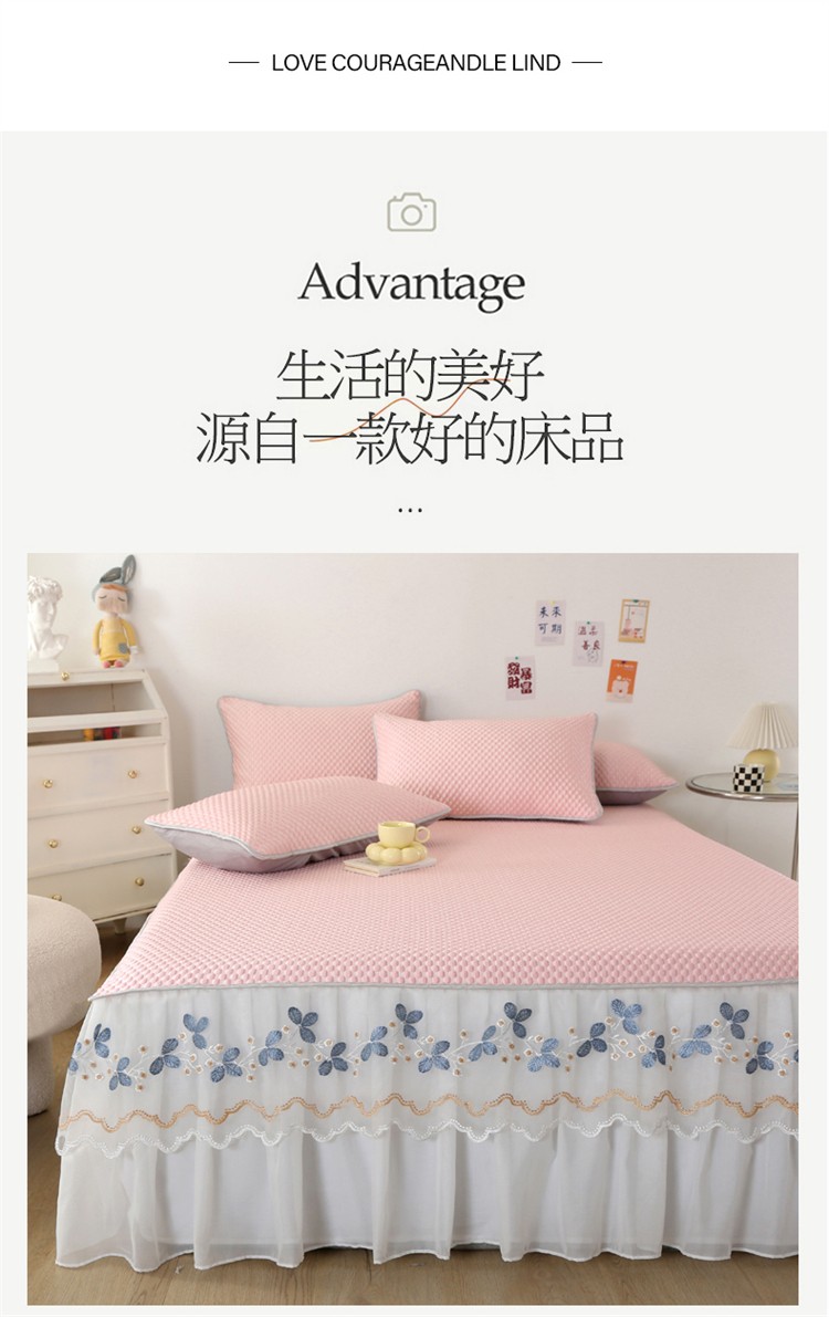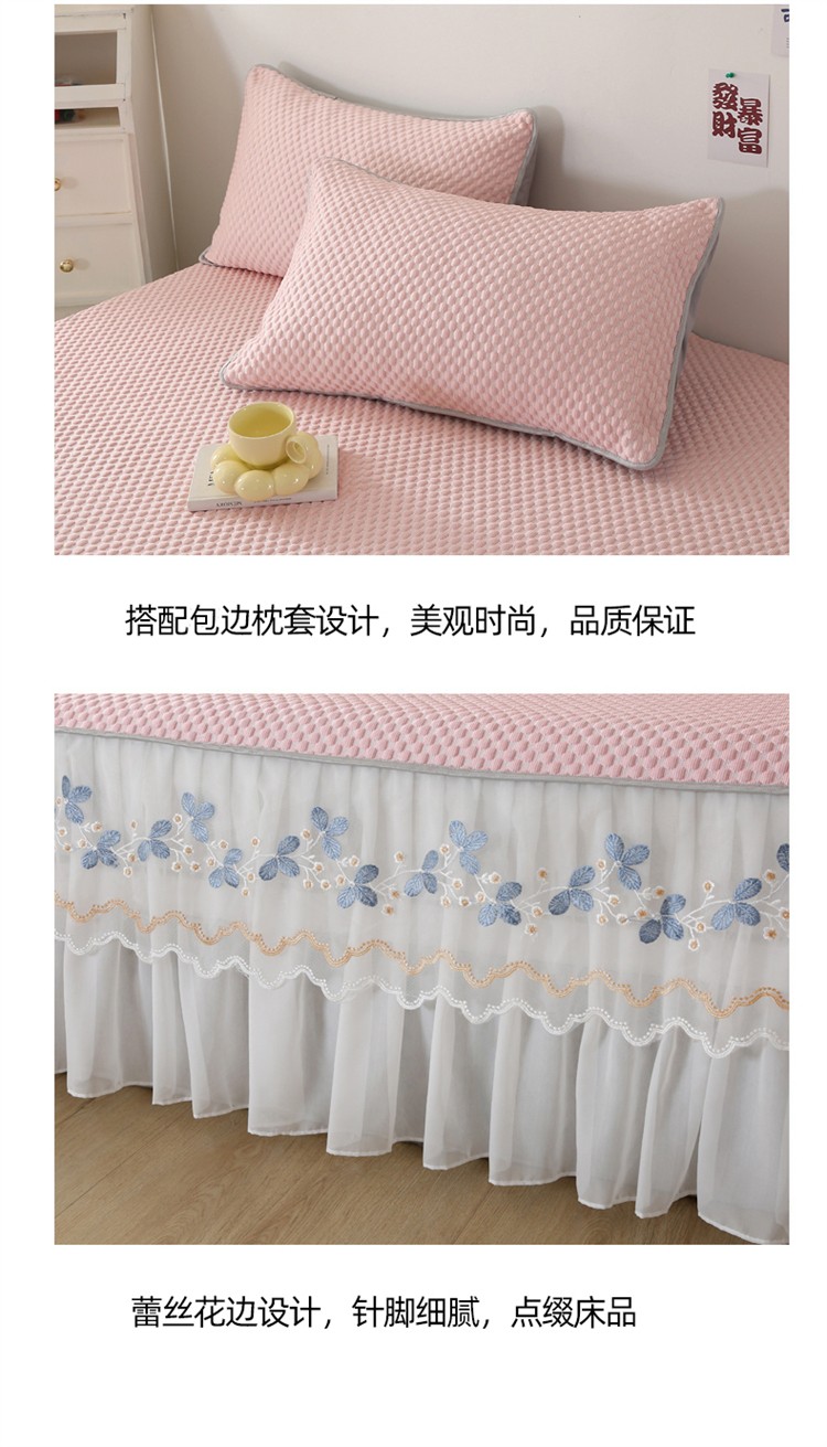 商品名称:能好家纺 2024新款600克全PE材质3D冰豆豆绣花床裙款 绣花 粉