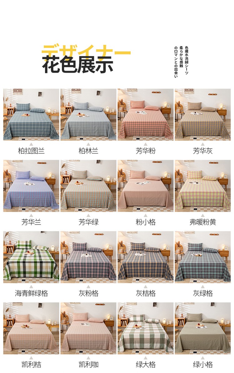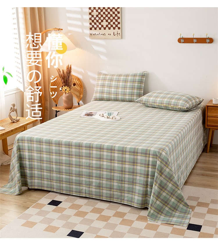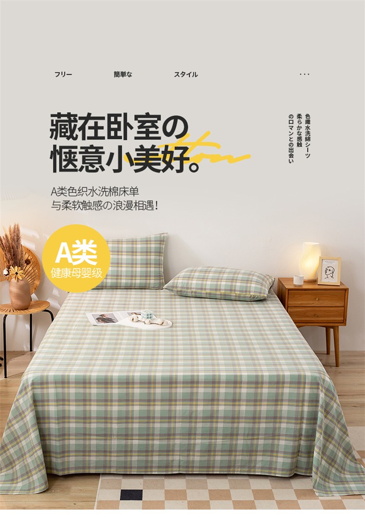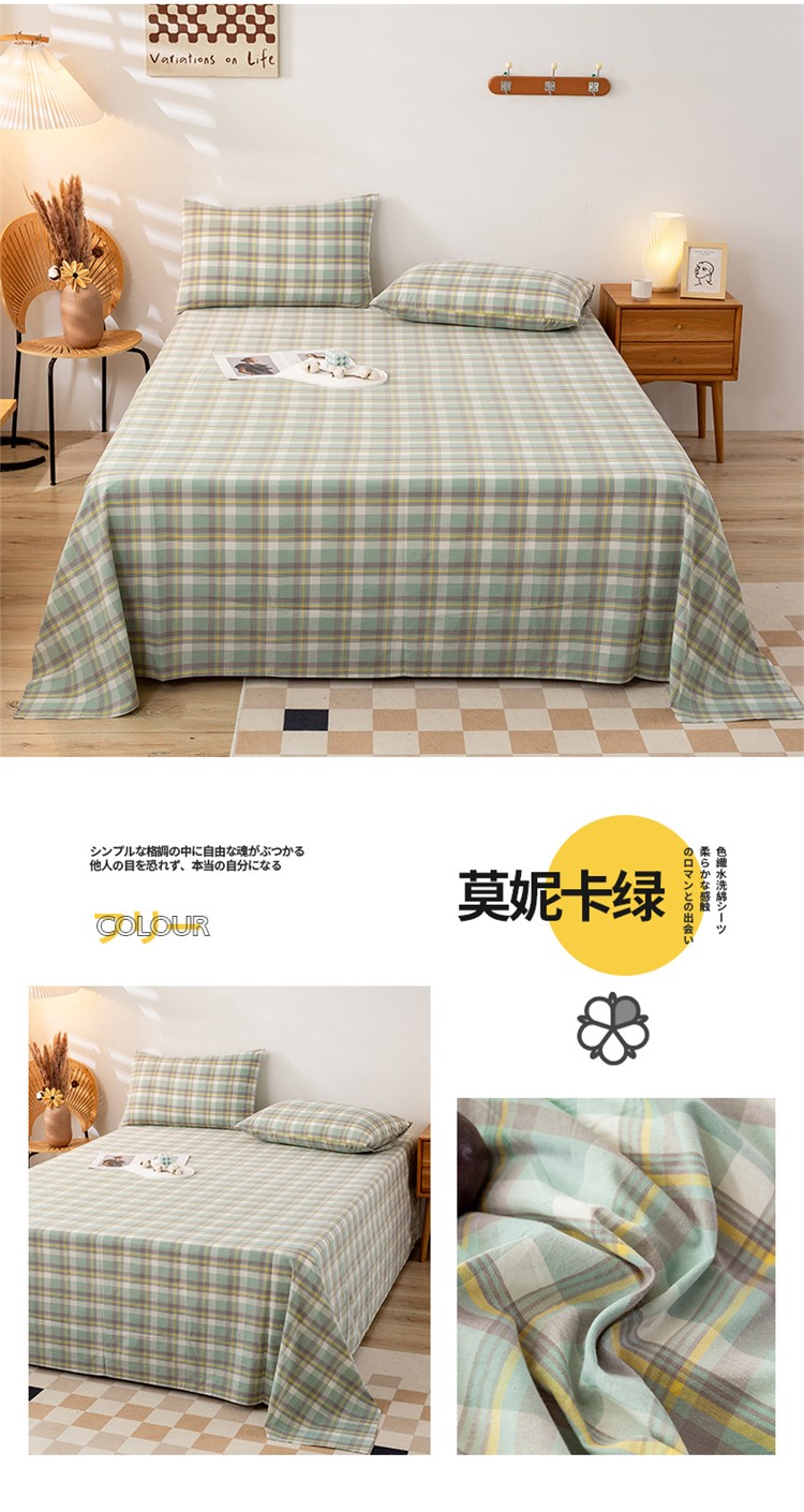 九沐良品 新款A类色织水洗棉床单 莫妮卡绿