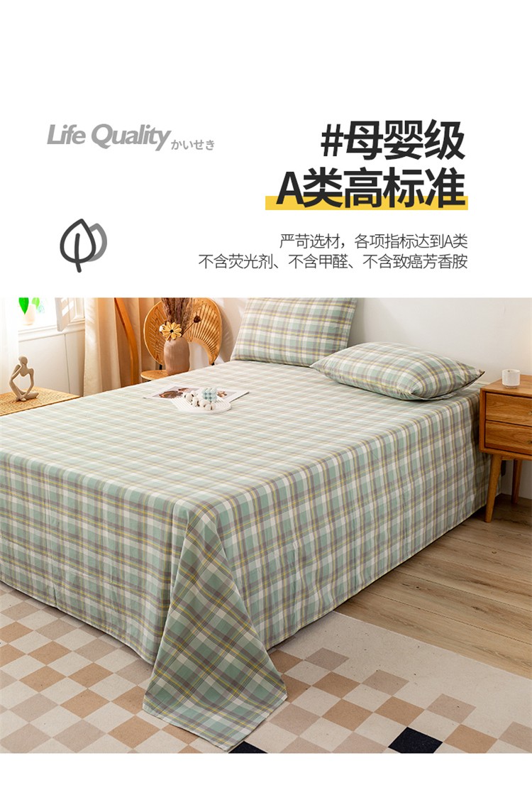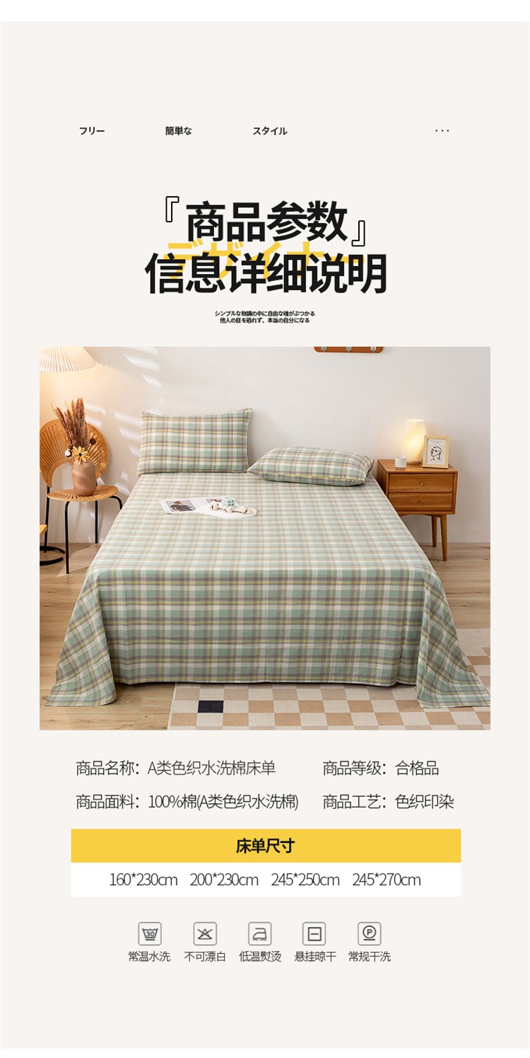 商品名称:九沐良品 新款A类色织水洗棉床单 莫妮卡绿