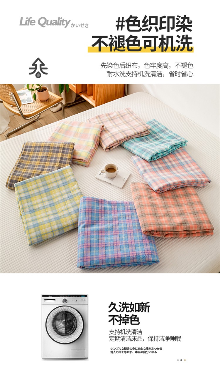(总)九沐良品 2025新款全棉色织水洗棉无印风四件套,柏拉图-兰,粉小格,格林粉,灰条,绿大格,米小格,米粽艾青格,莫妮卡粉,莫妮卡兰,浅蓝小格,青春海蓝,希尔威亚蓝,新灰格,星空粉,星空绿,英伦格,中灰条