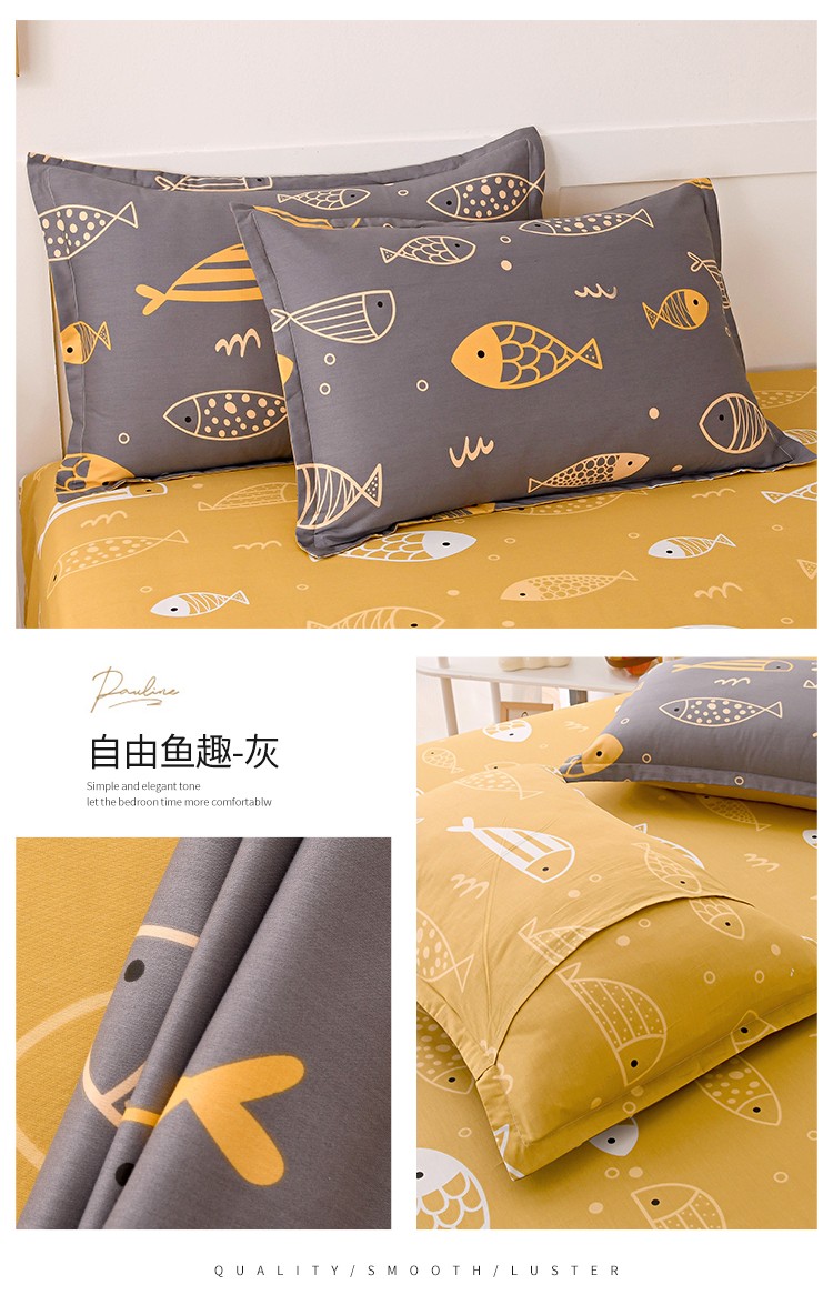 • 91家纺网 家纺一手货源 找家纺 茗婷 2025纯棉单人双人枕套枕芯 自由鱼趣-灰
