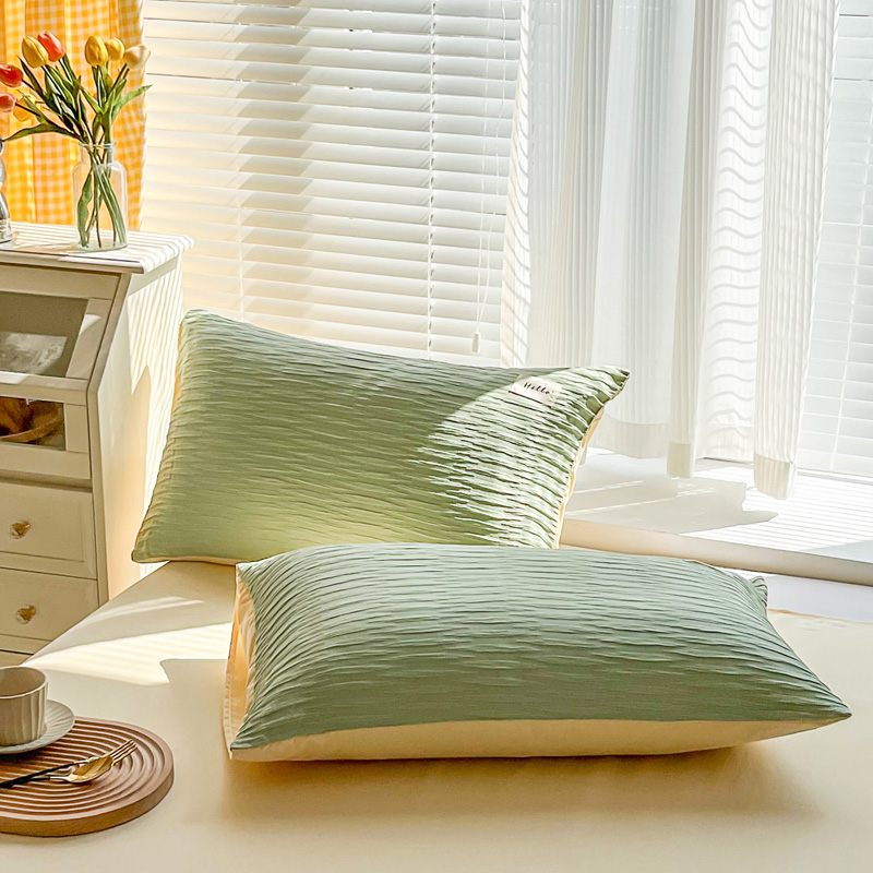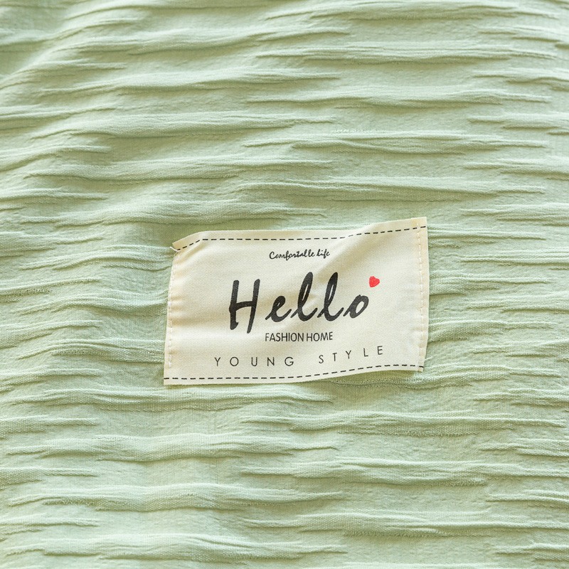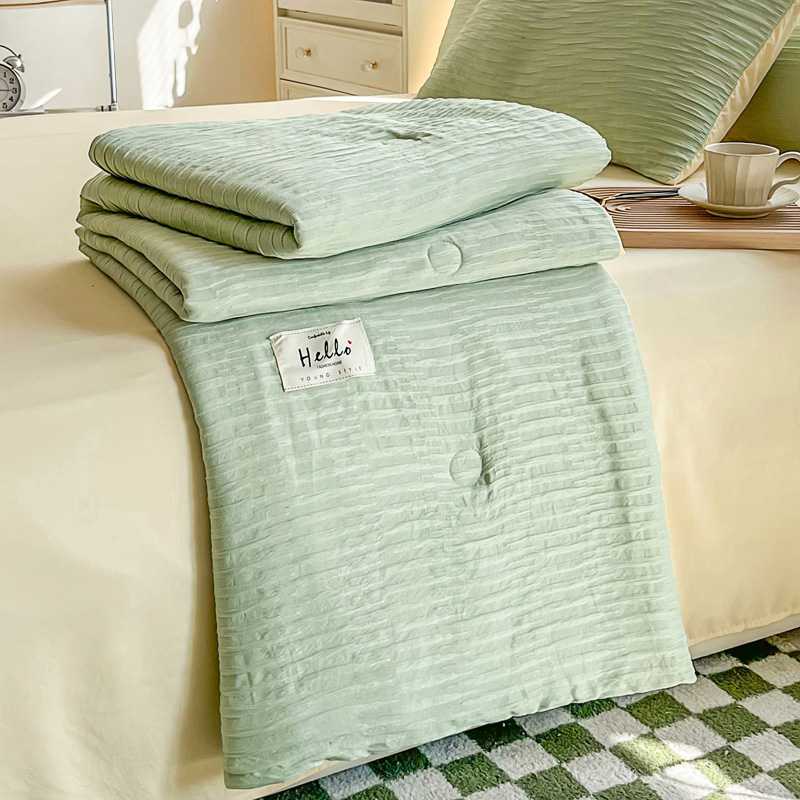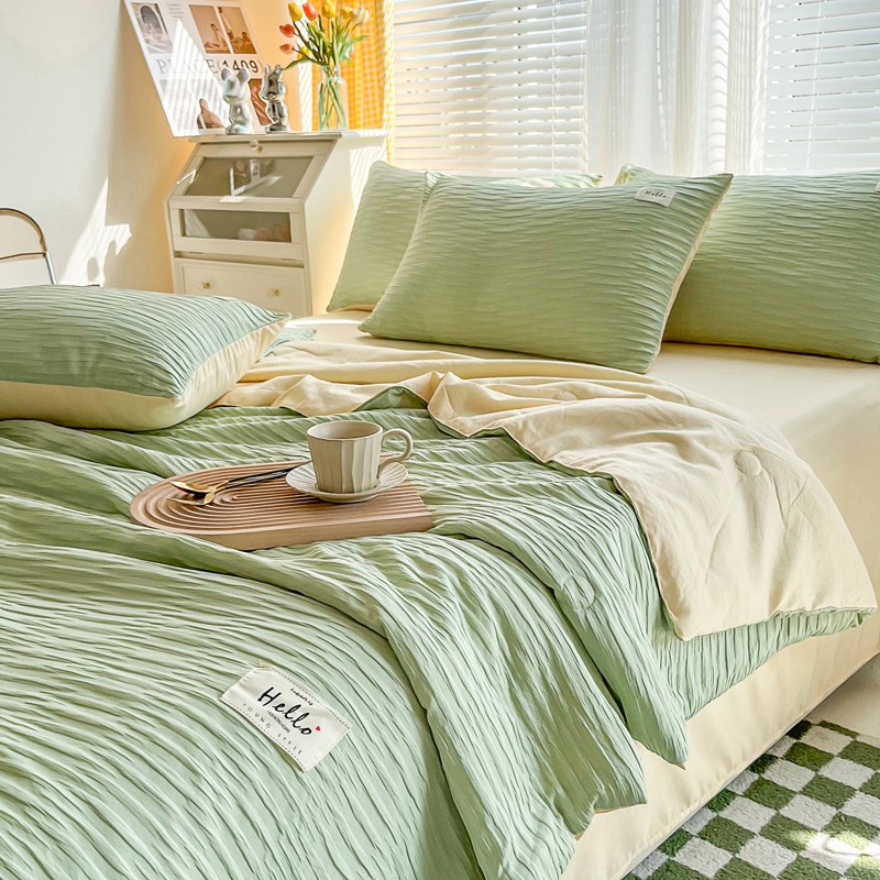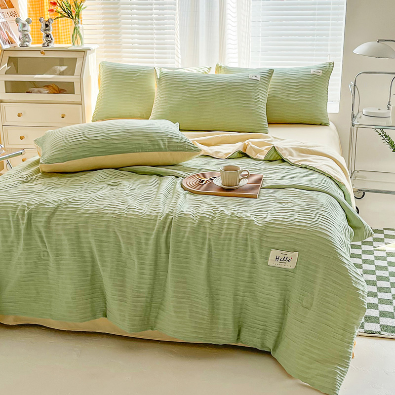 商品名称:斯卡诺 2025针织泡泡纱夏被四件套简约纯色夏被空调被水洗棉夏被四件套 绿加黄