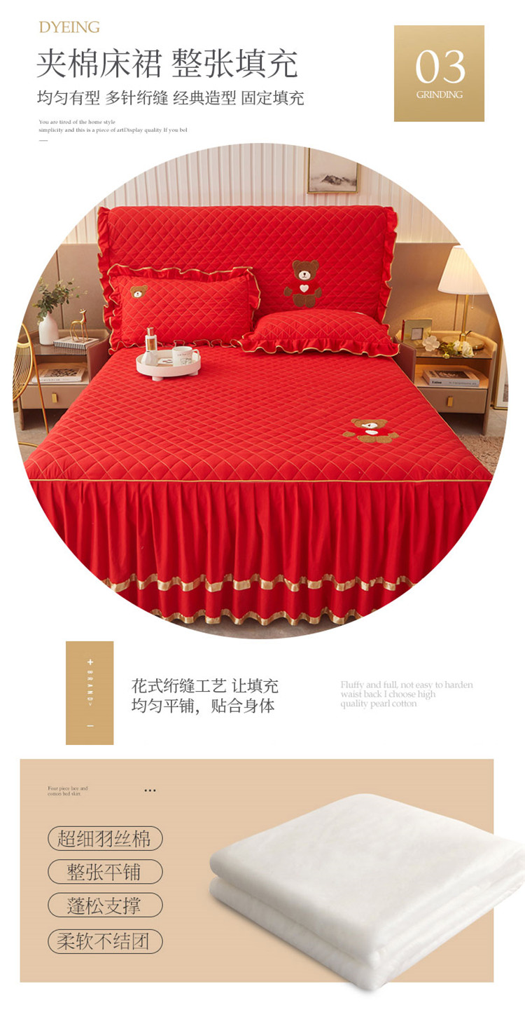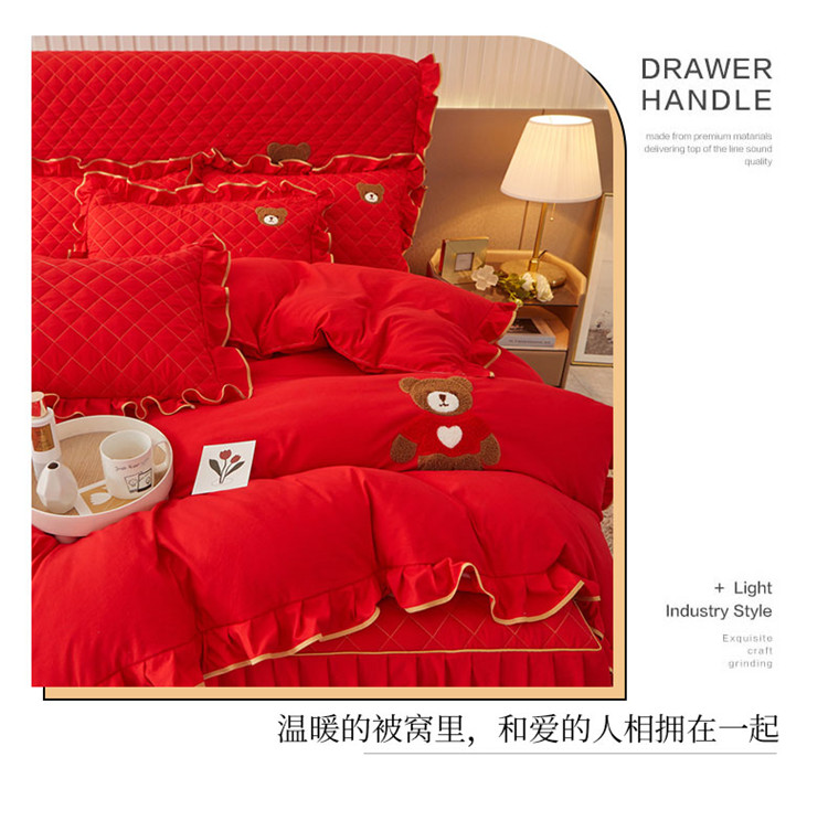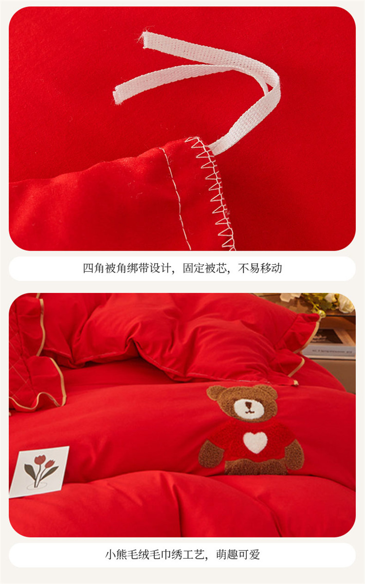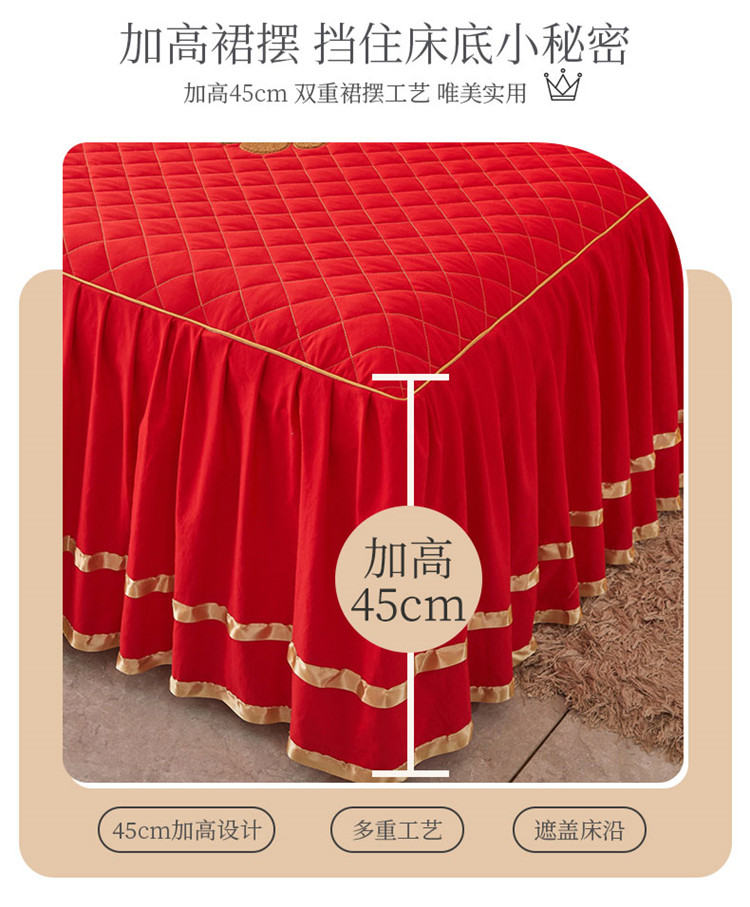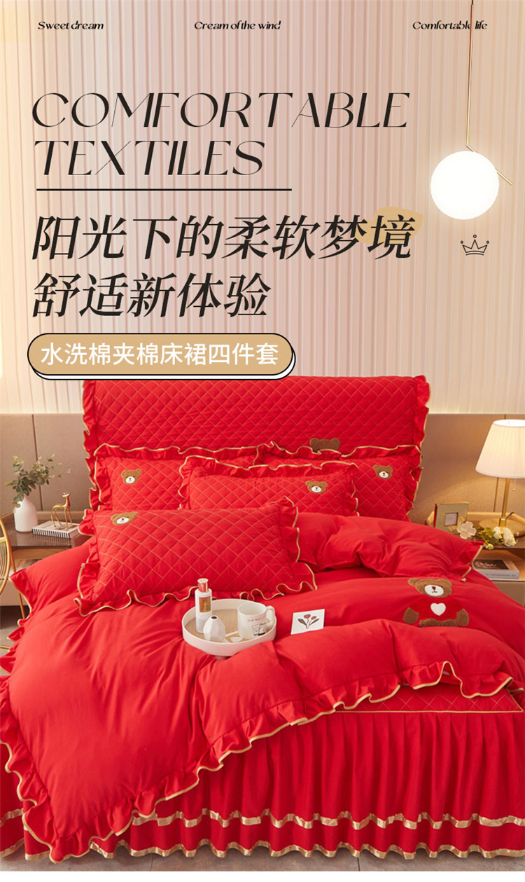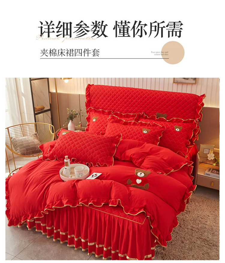 当前位置: 91家纺网 > 商品网购 > 床品套件 > 四件套 > 水洗棉四件套 > 屹成家纺 2024年水洗棉毛巾绣款床裙四件套 大红