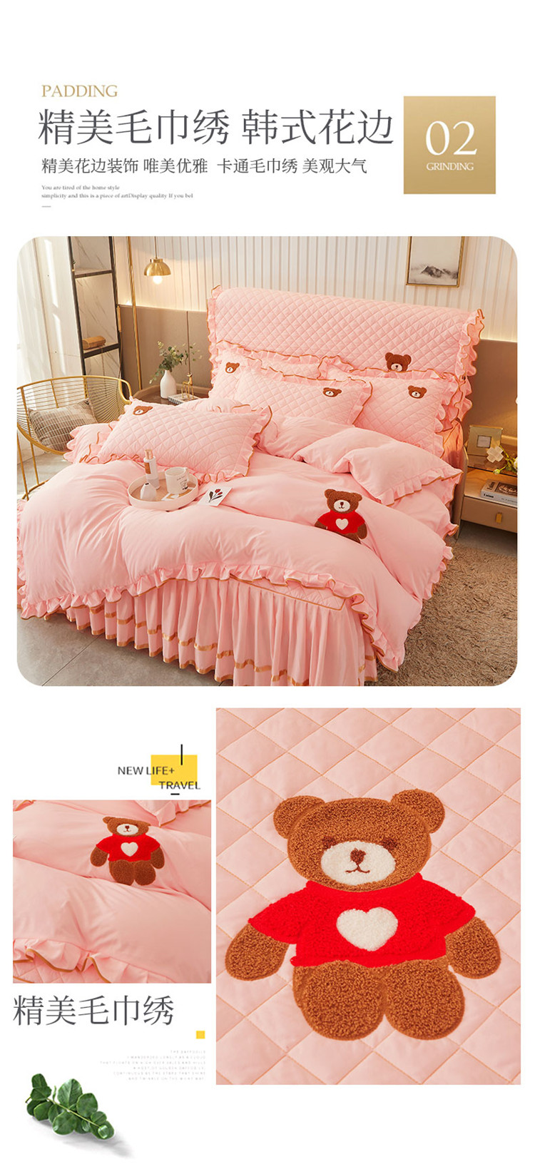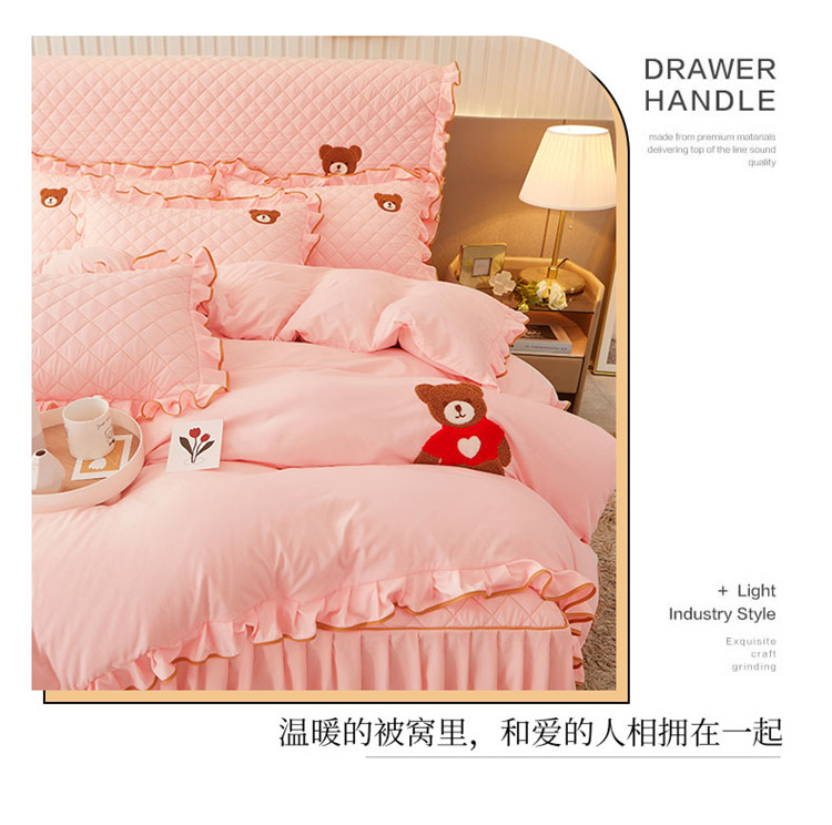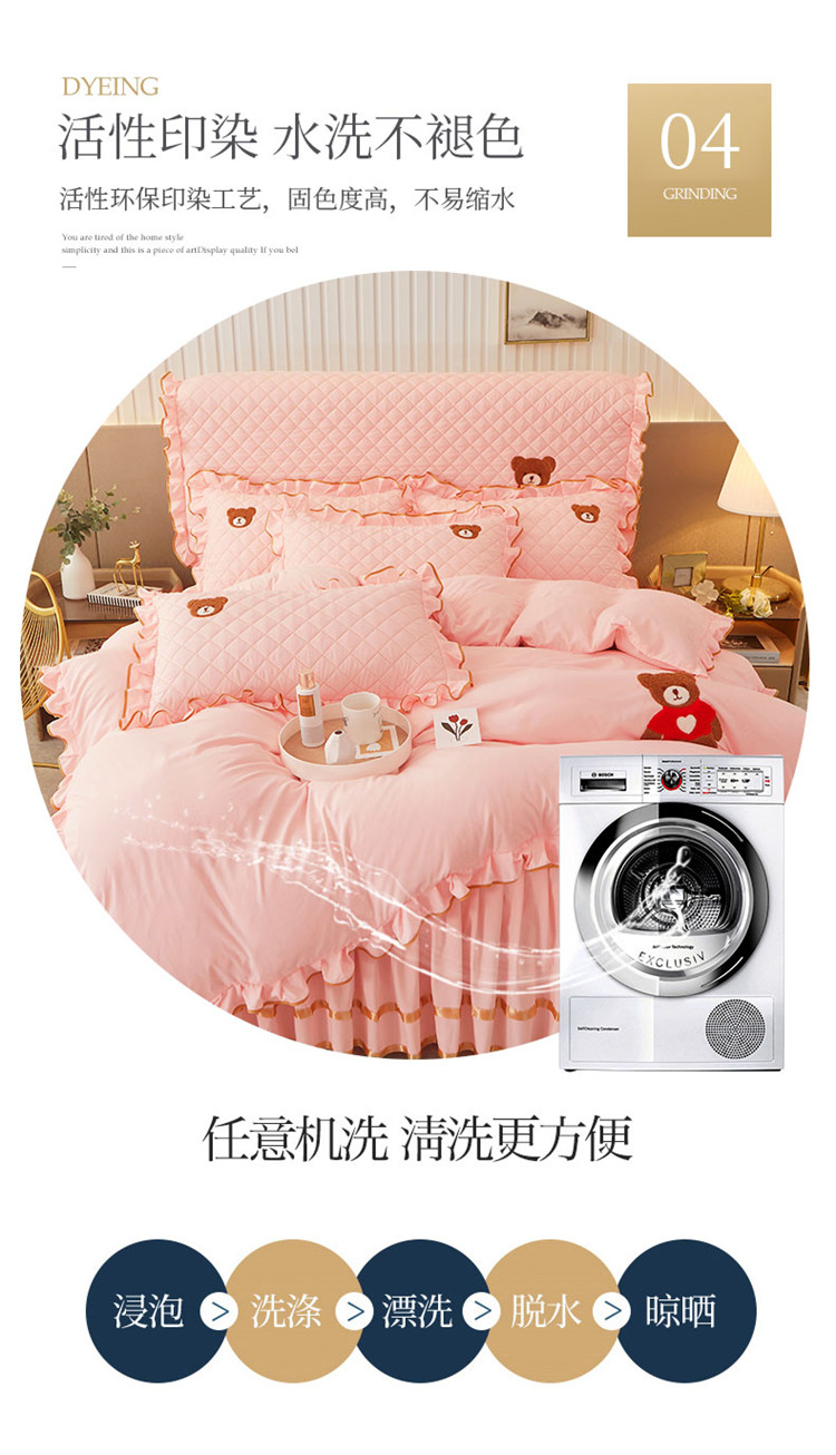 当前位置: 91家纺网 > 商品网购 > 床品套件 > 四件套 > 水洗棉四件套 > 屹成家纺 2024年水洗棉毛巾绣款床裙四件套 玉色