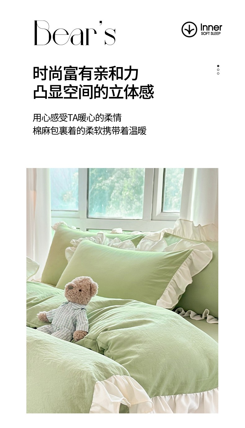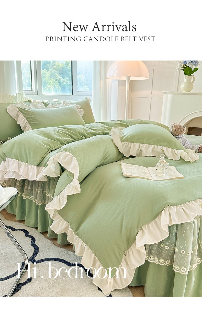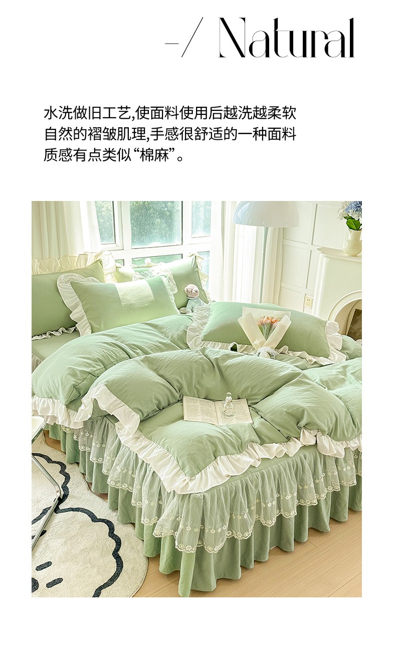 商品名称:言熙居 2023新款A类清新风床裙四件套 云水绿