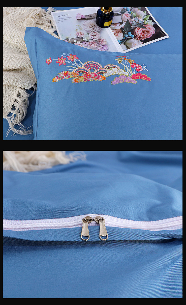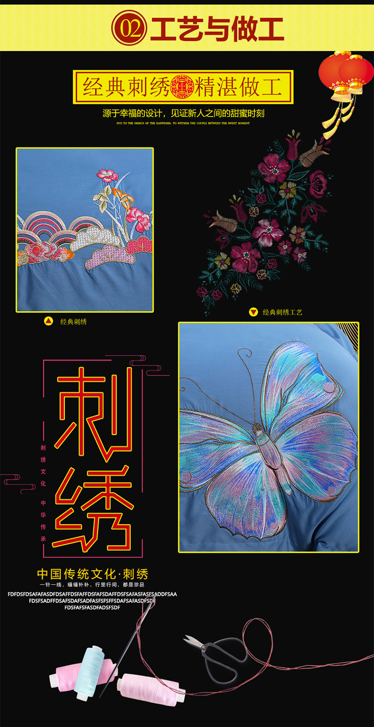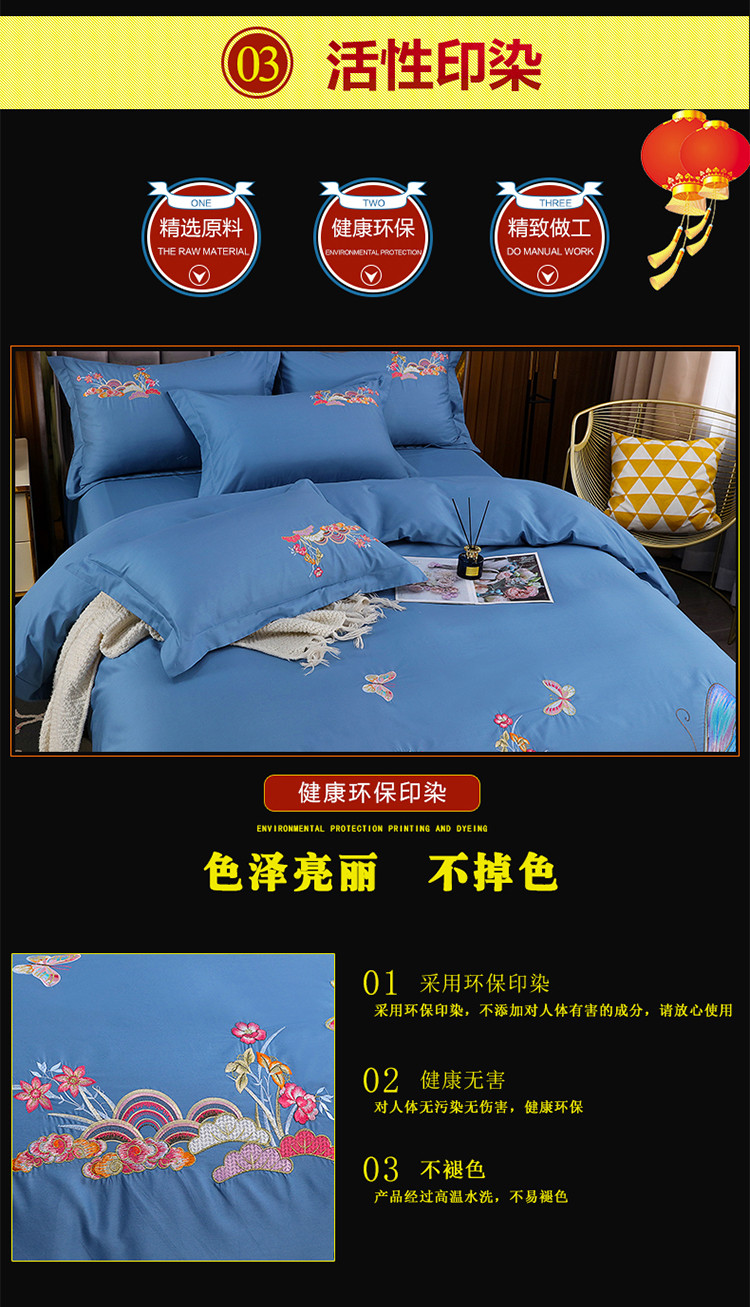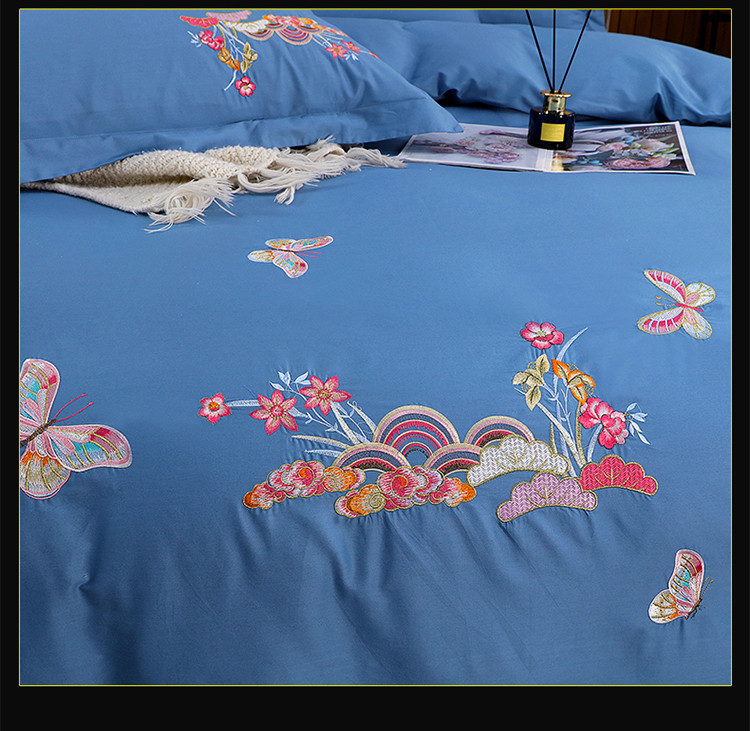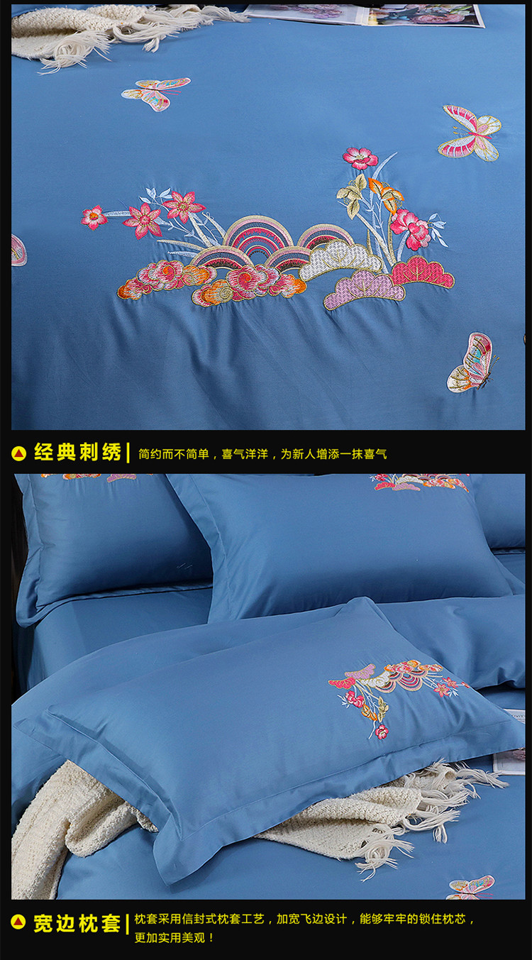 慕她婚庆四件套大红色结婚全棉纯棉刺绣花多件套直播 花香蝶舞蓝灰