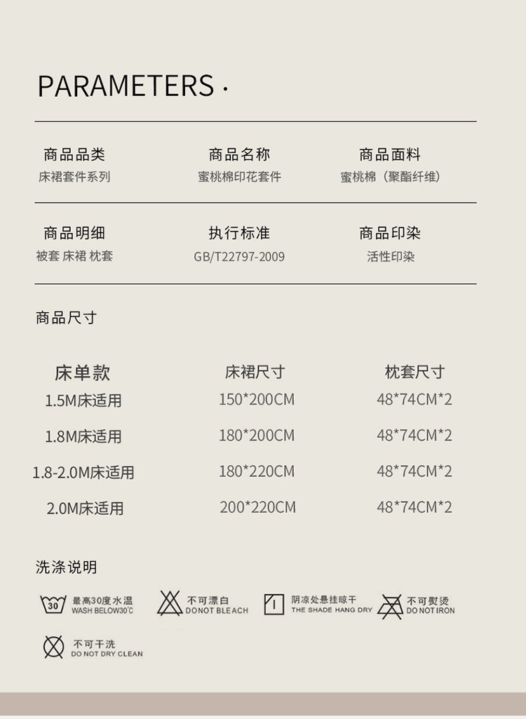 180*200cm(三件套) | ¥105.00 |