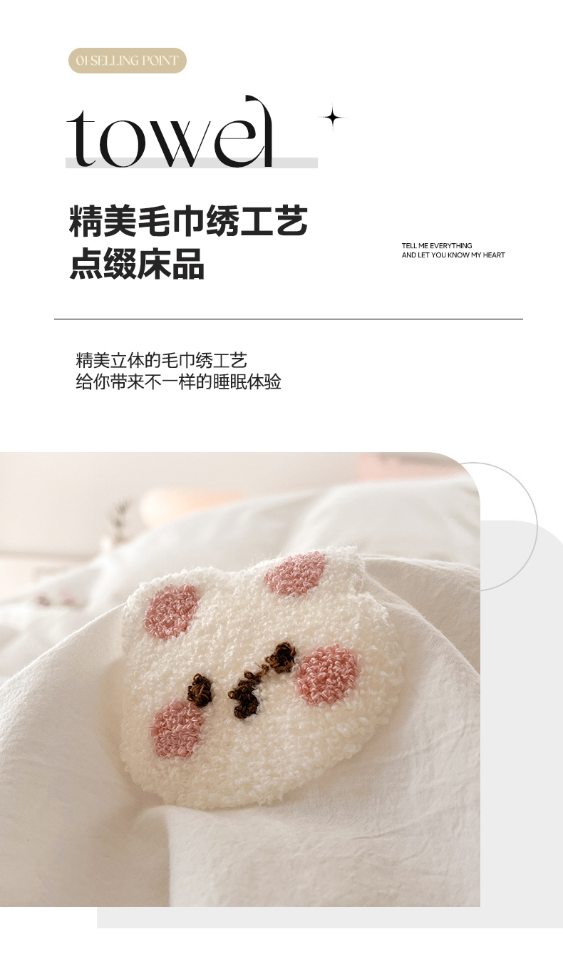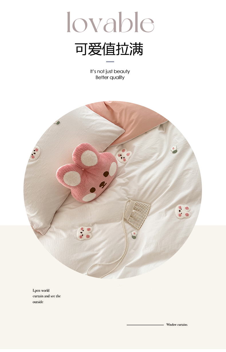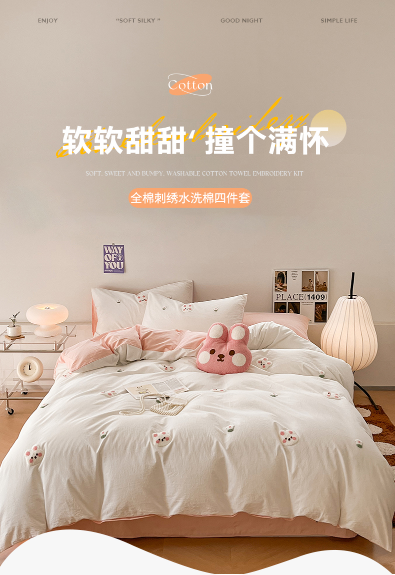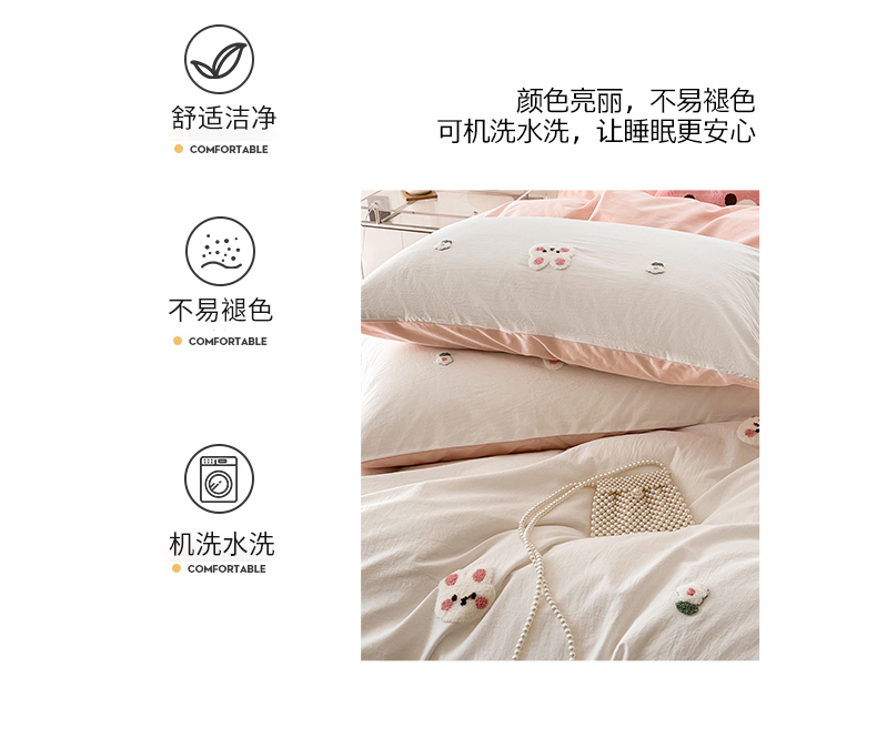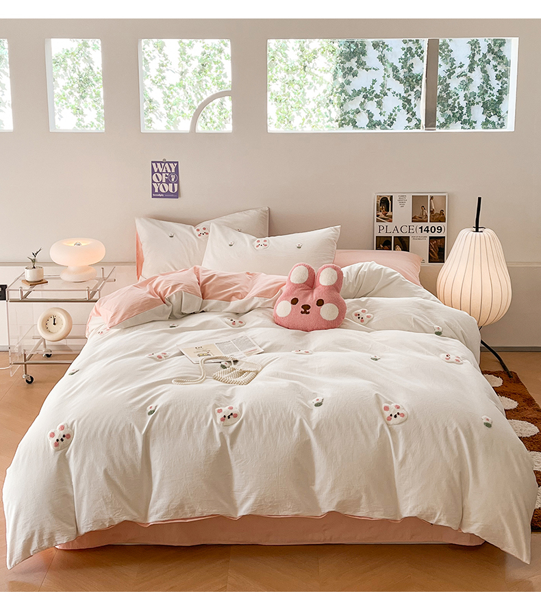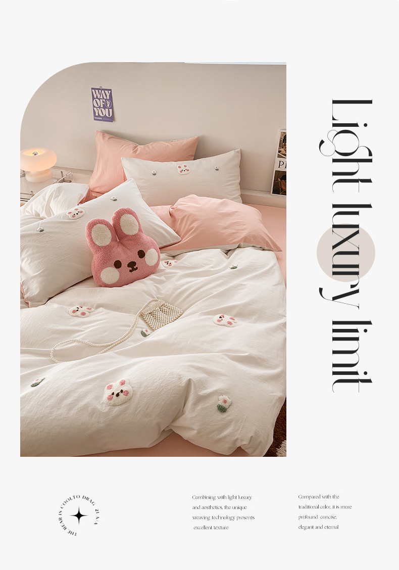 当前位置: 91家纺网 > 商品网购 > 床品套件 > 四件套 > 水洗棉四件套 > 慕尚家纺 2025新款全棉水洗棉毛巾绣四件套 米兔兔-白玉