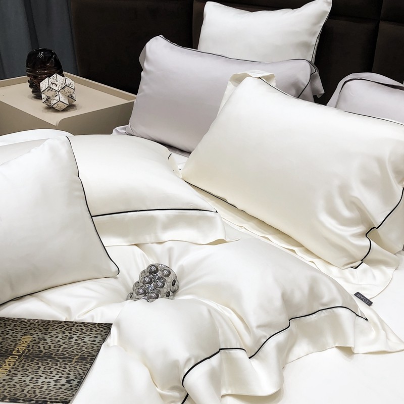 (总)涞澳家纺 2026新款全棉纯棉水洗棉纯色花边款四件套-珠若,珠若-米白,珠若-浅灰,珠若-浅绿,珠若-浅玉