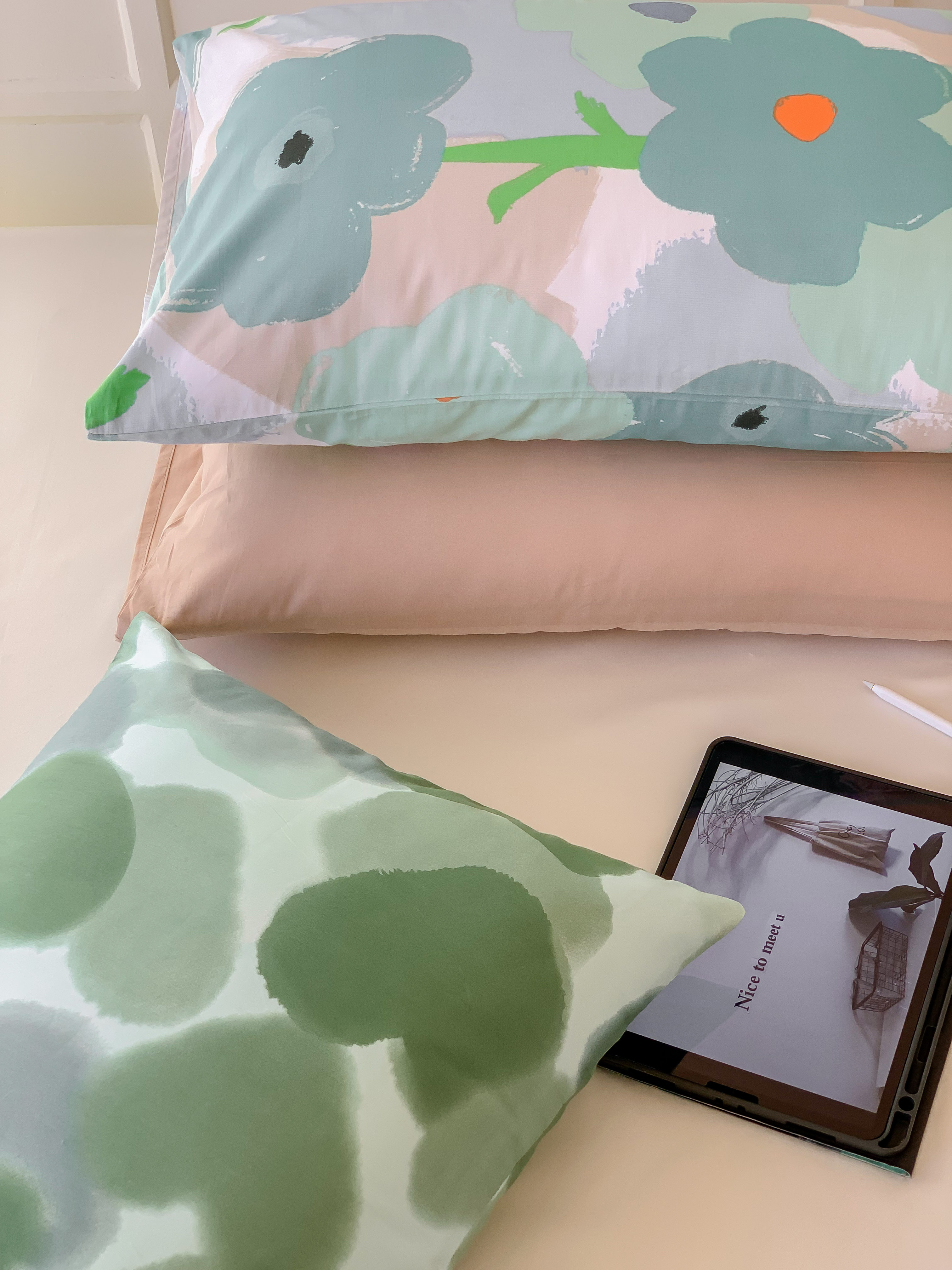 窝米 全棉斜纹枕套(花卉类) 绿藤枕套