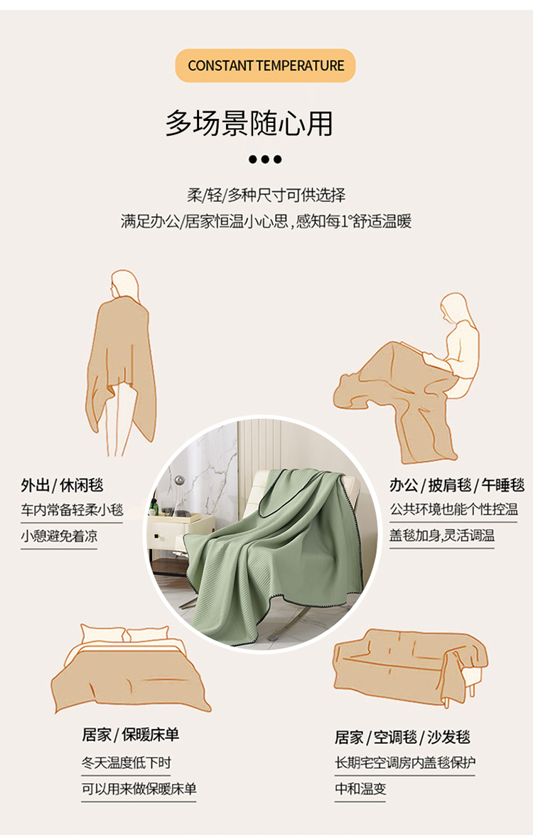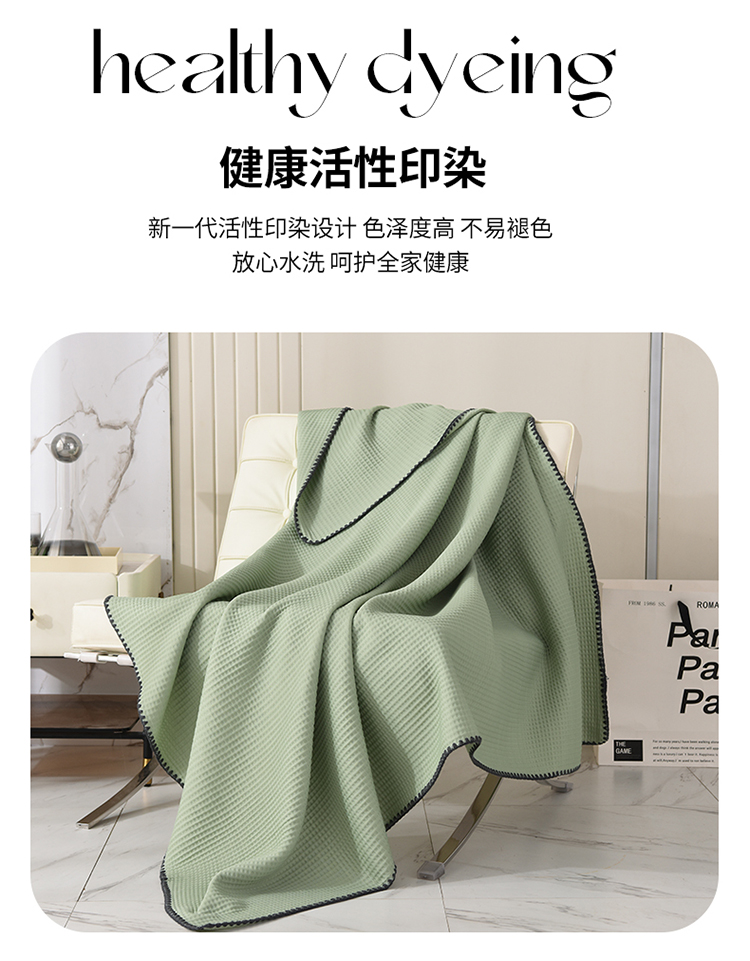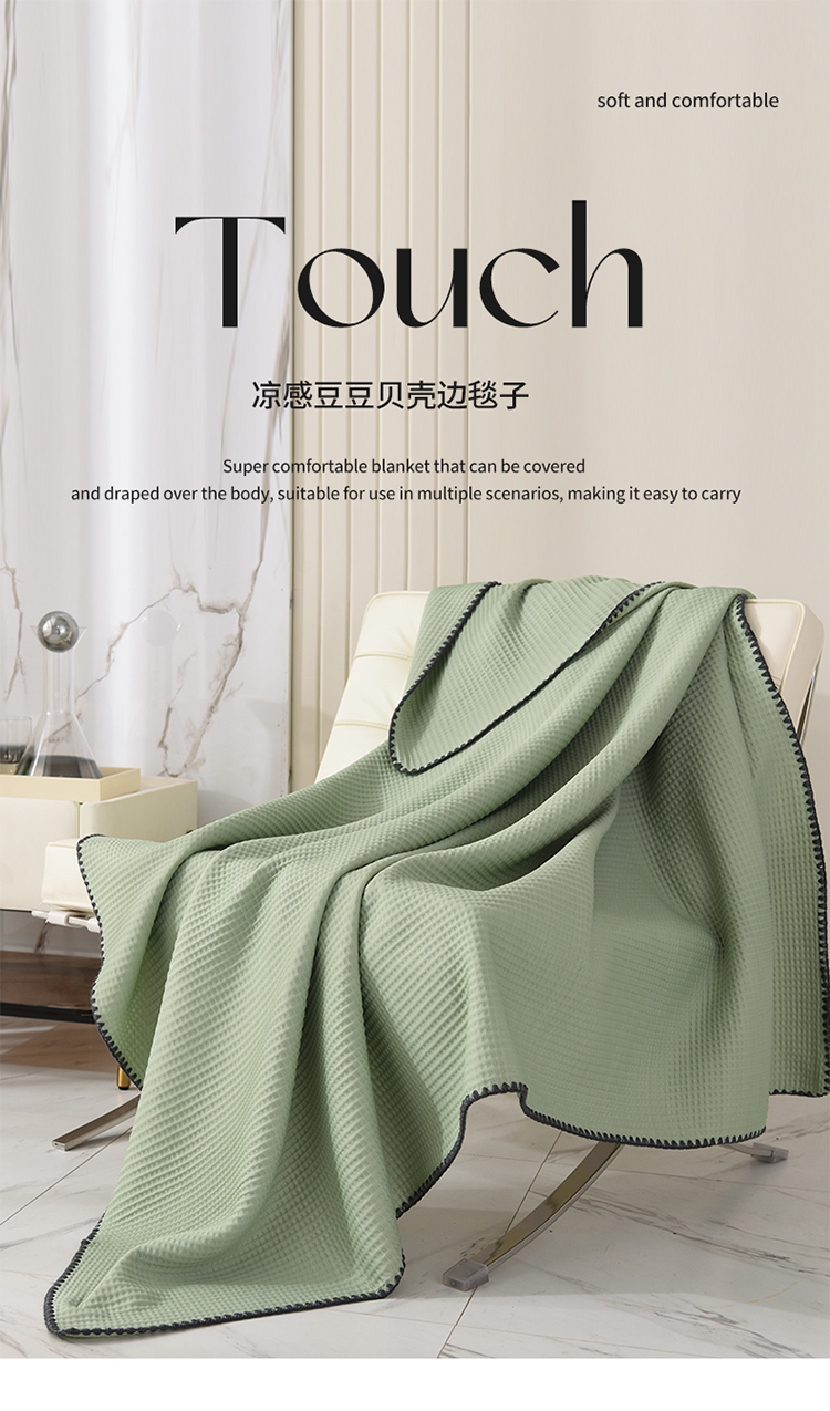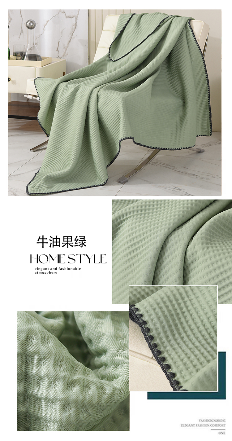 妖妖家纺 2023新款贝壳绣凉感豆豆盖毯 牛油果绿
