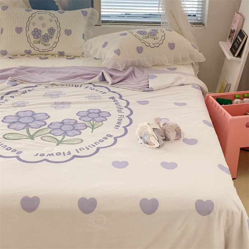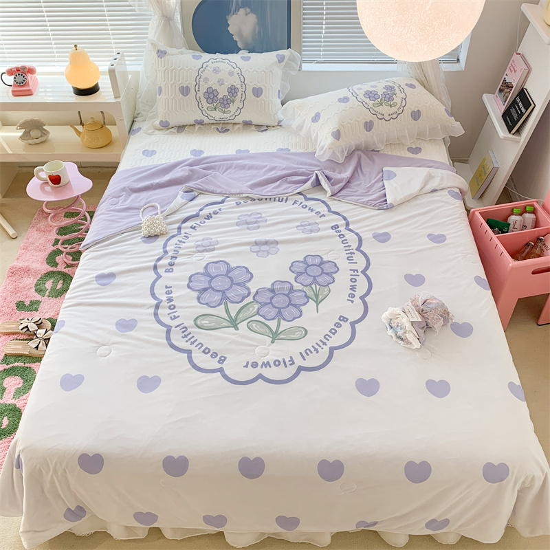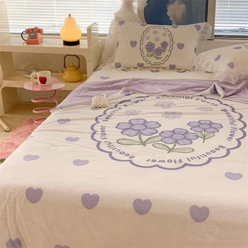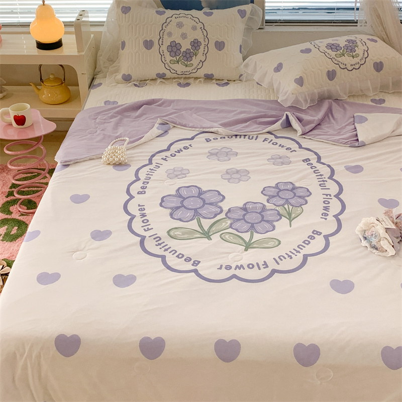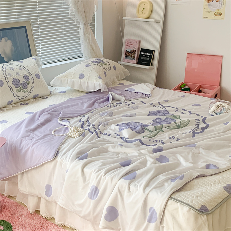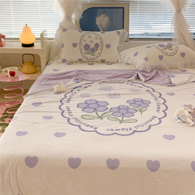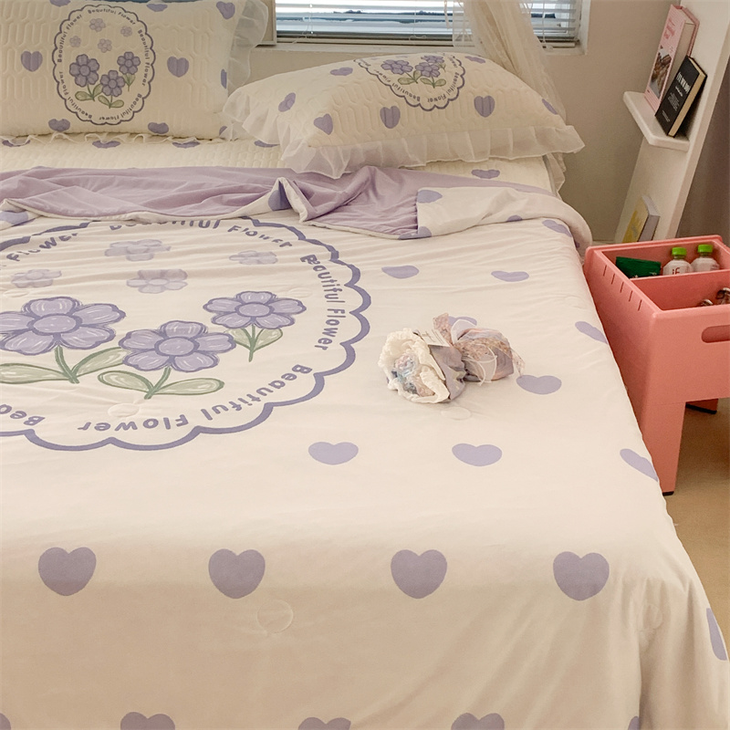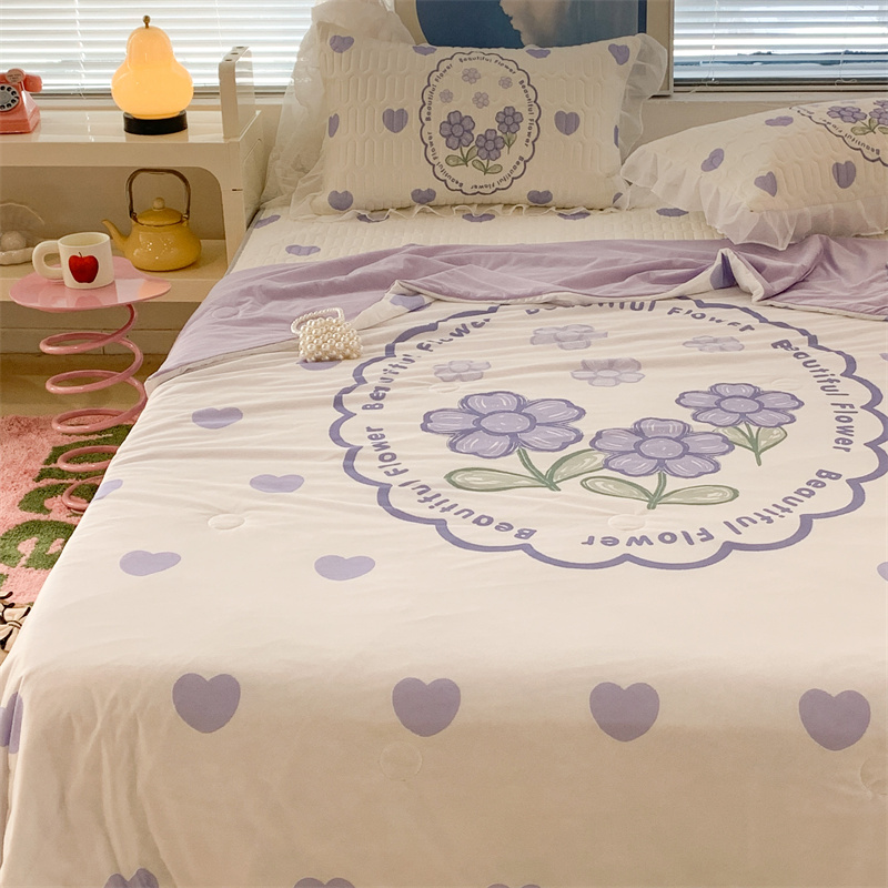 昔可 大版数码印花凉感夏被 紫爱心小花朵