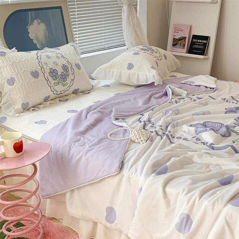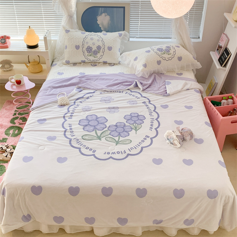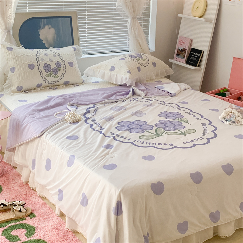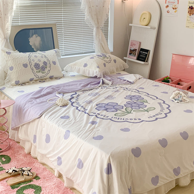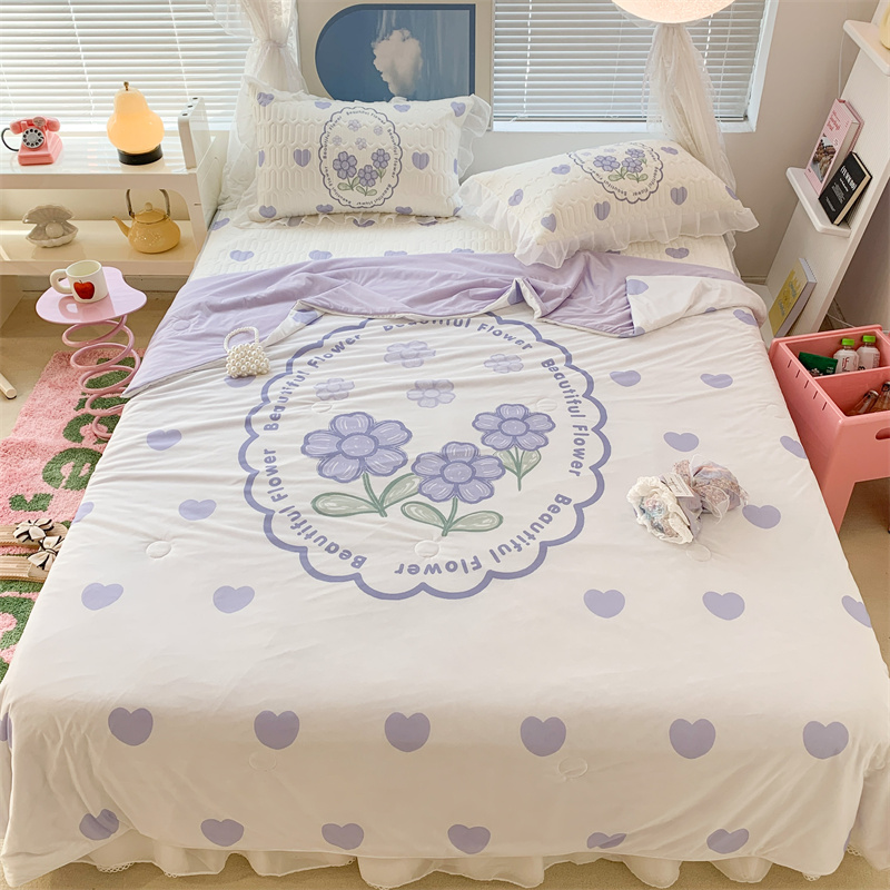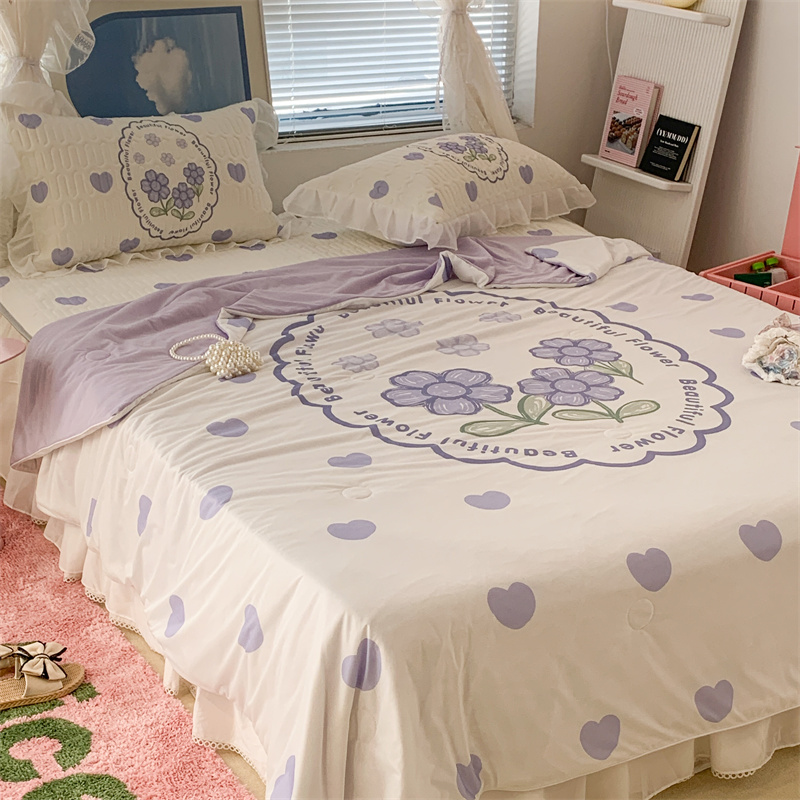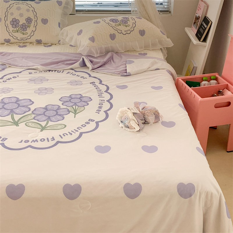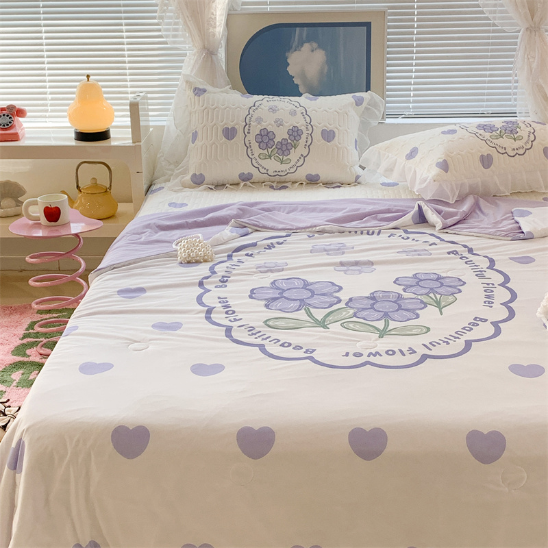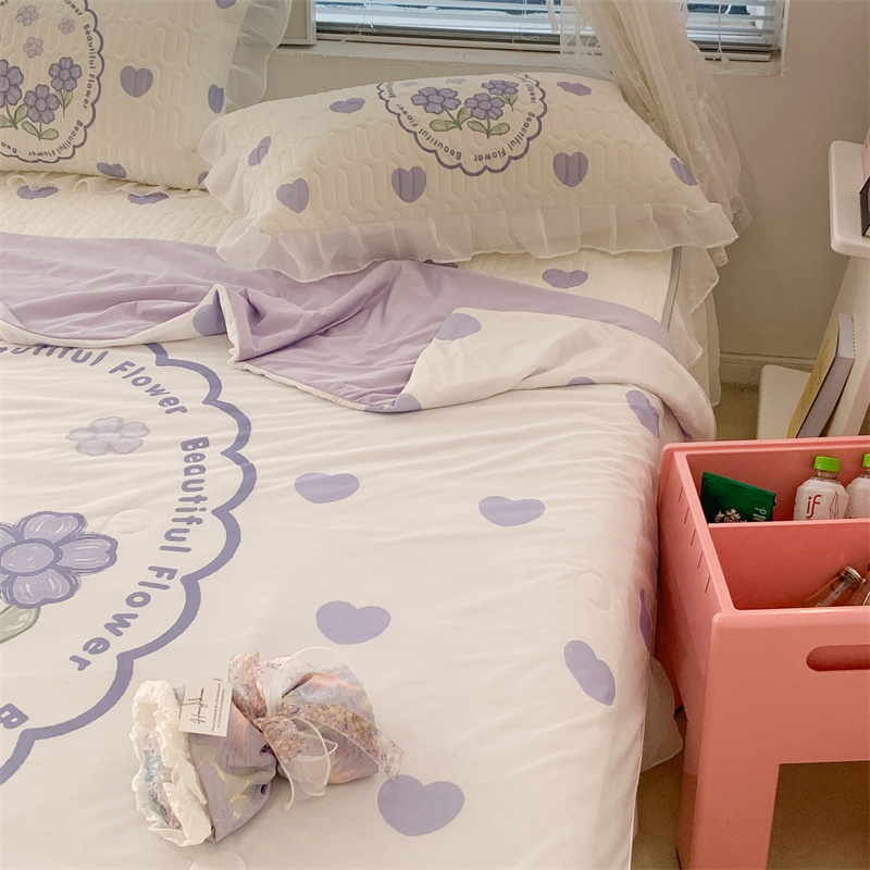 昔可 大版数码印花凉感夏被 紫爱心小花朵