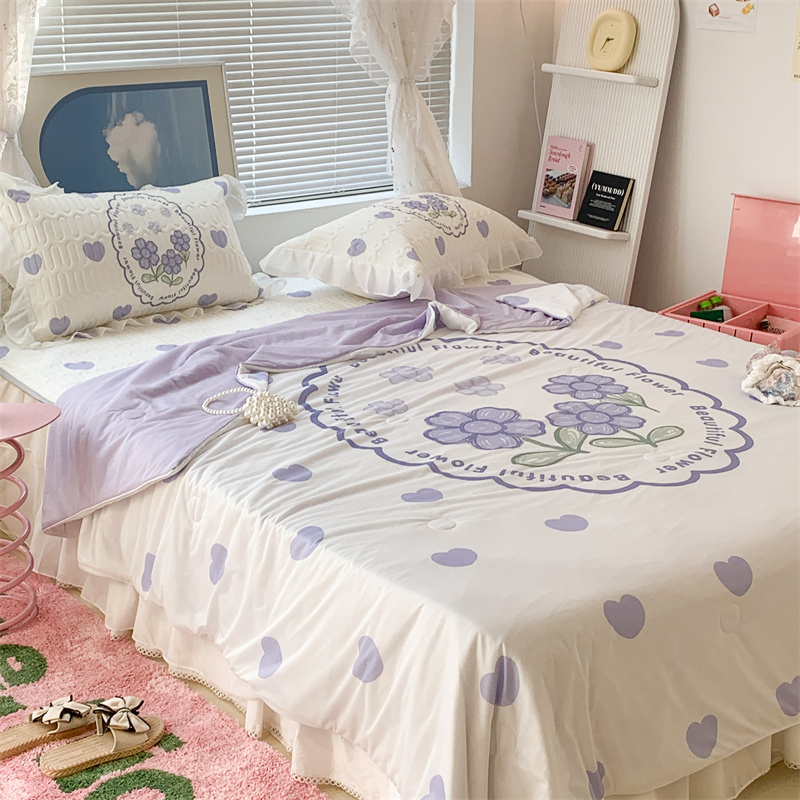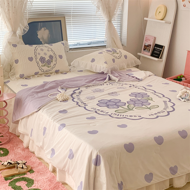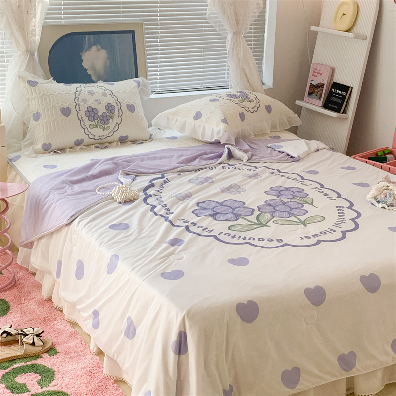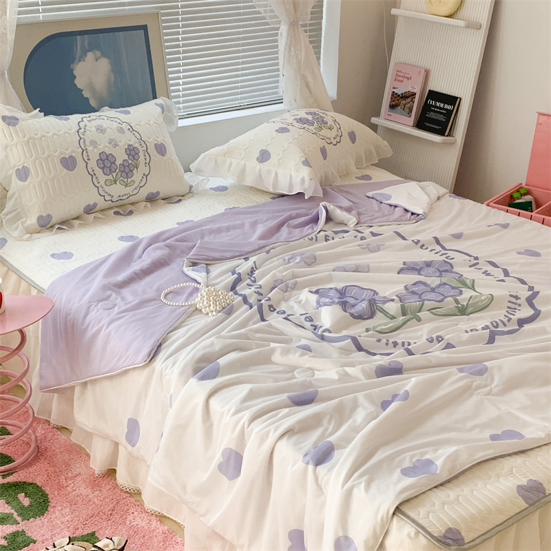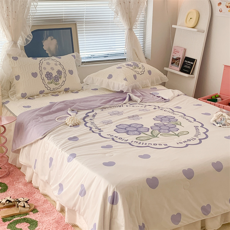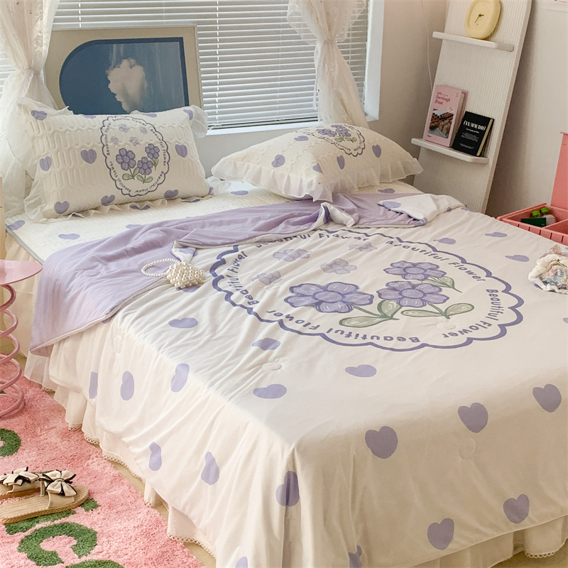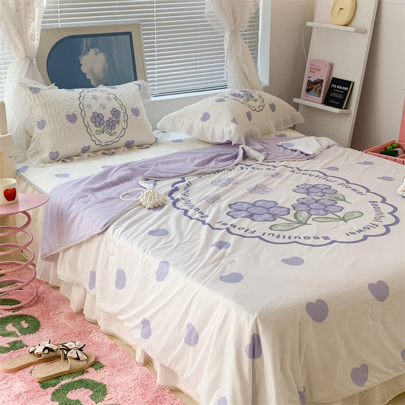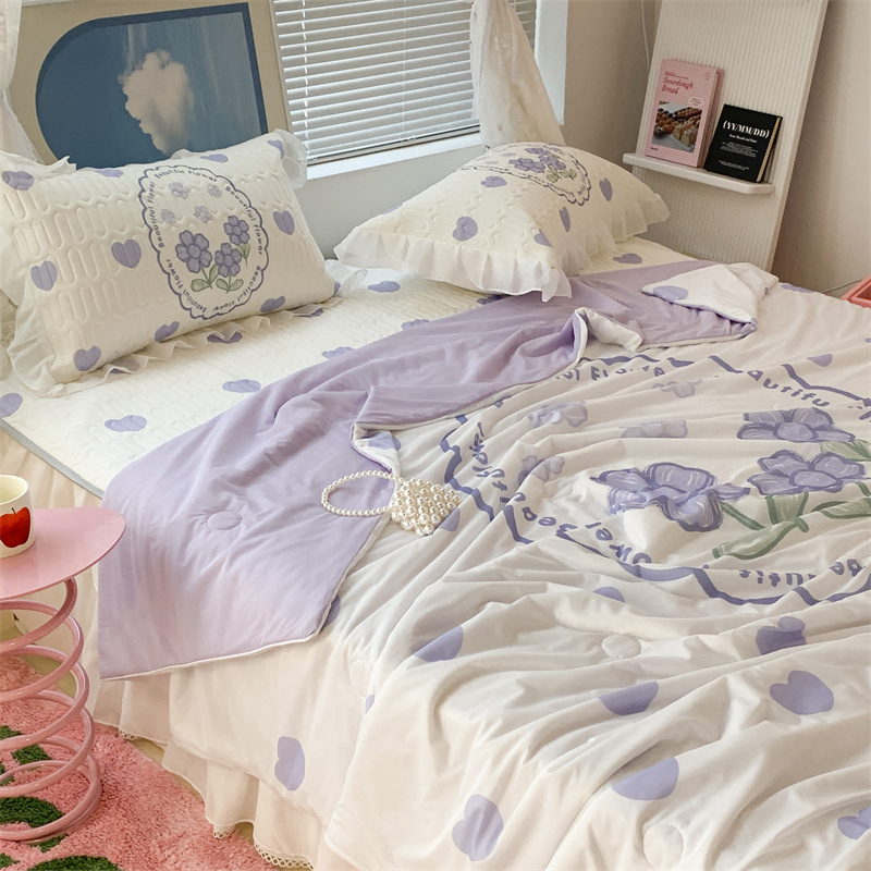 昔可 大版数码印花凉感夏被 紫爱心小花朵