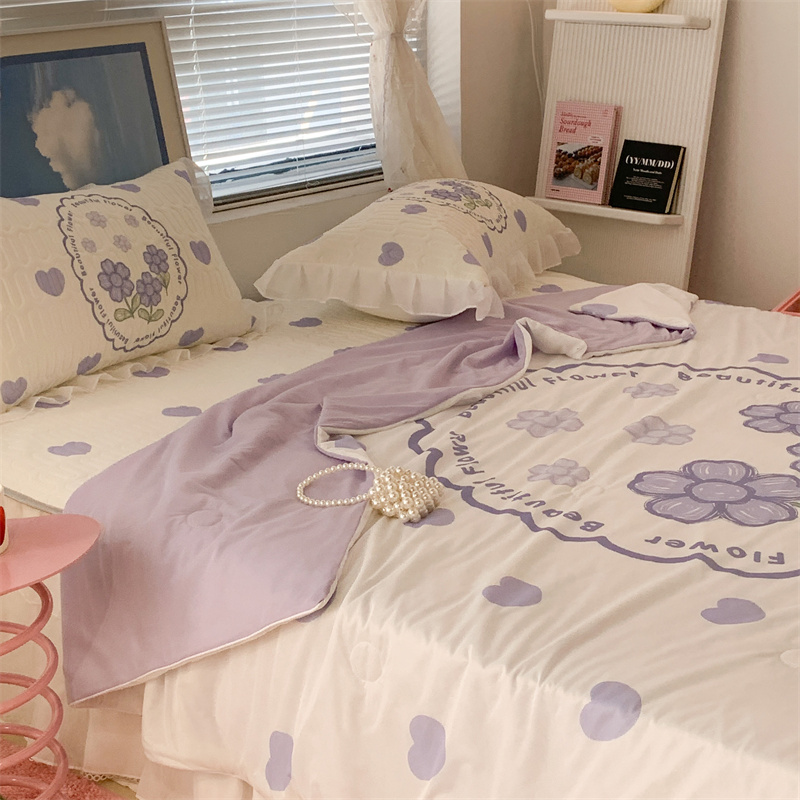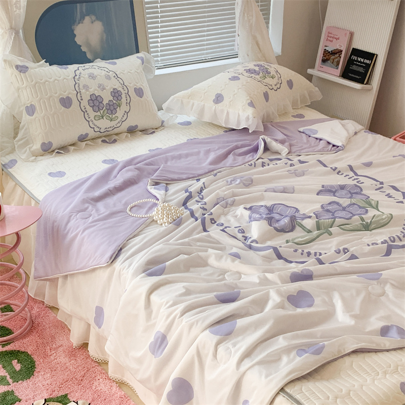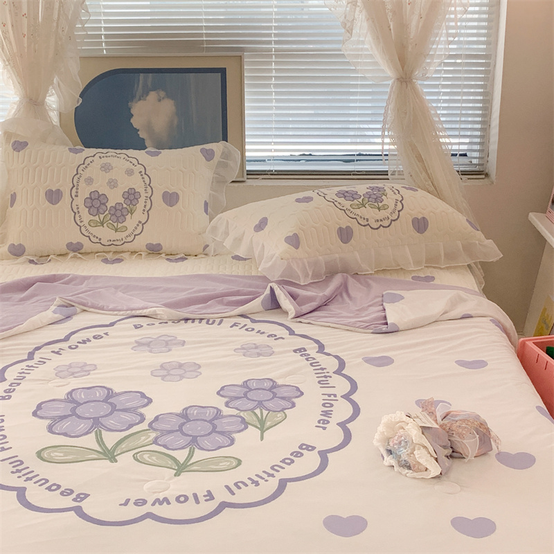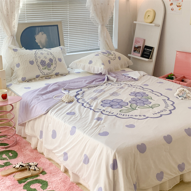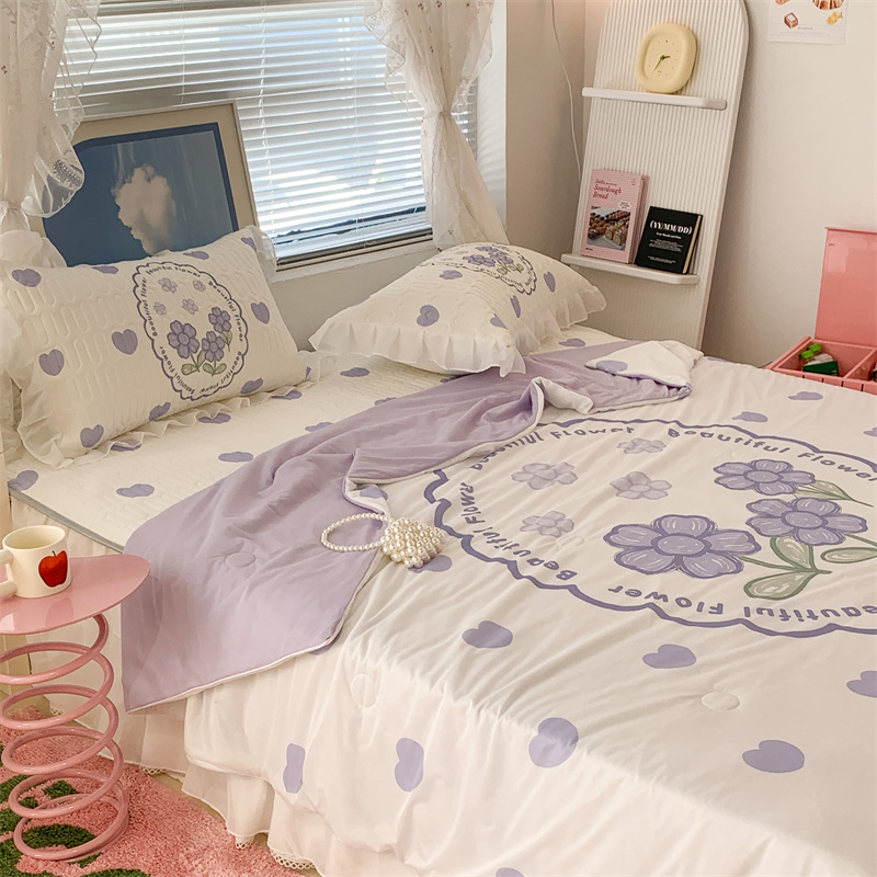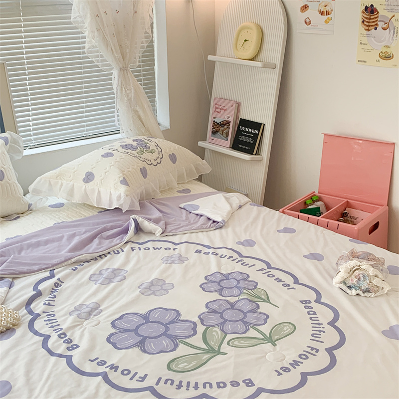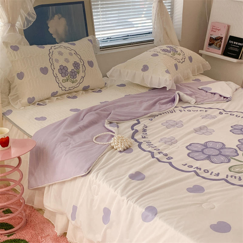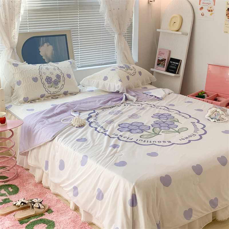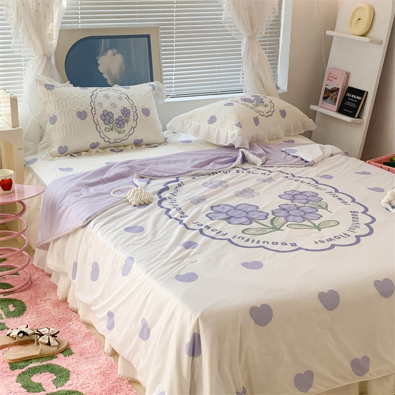 昔可 大版数码印花凉感夏被 紫爱心小花朵