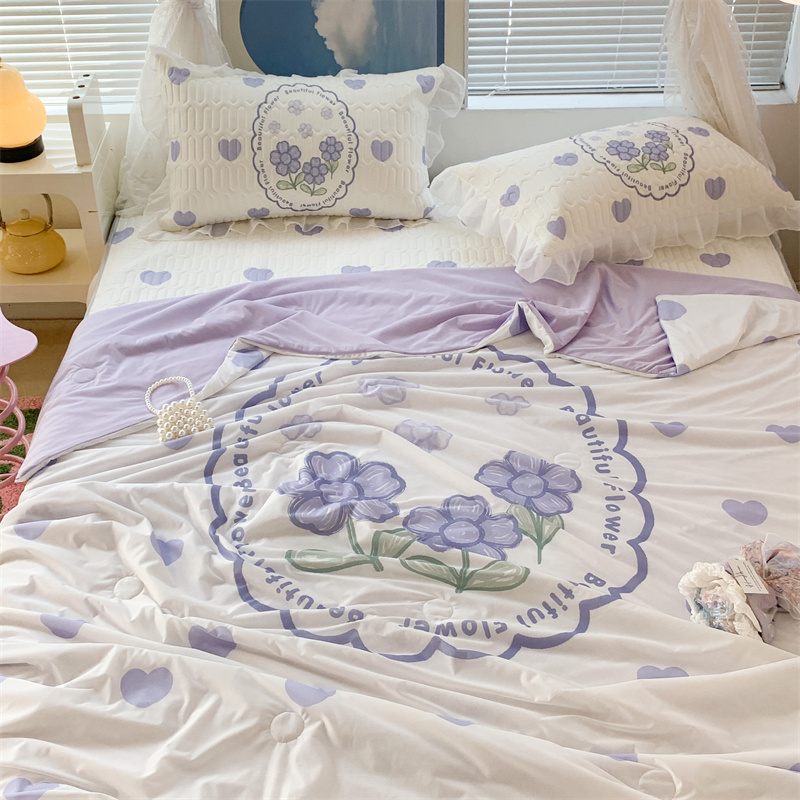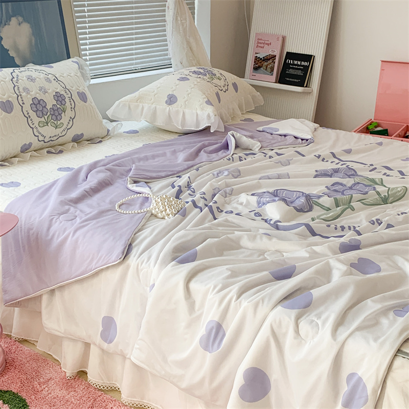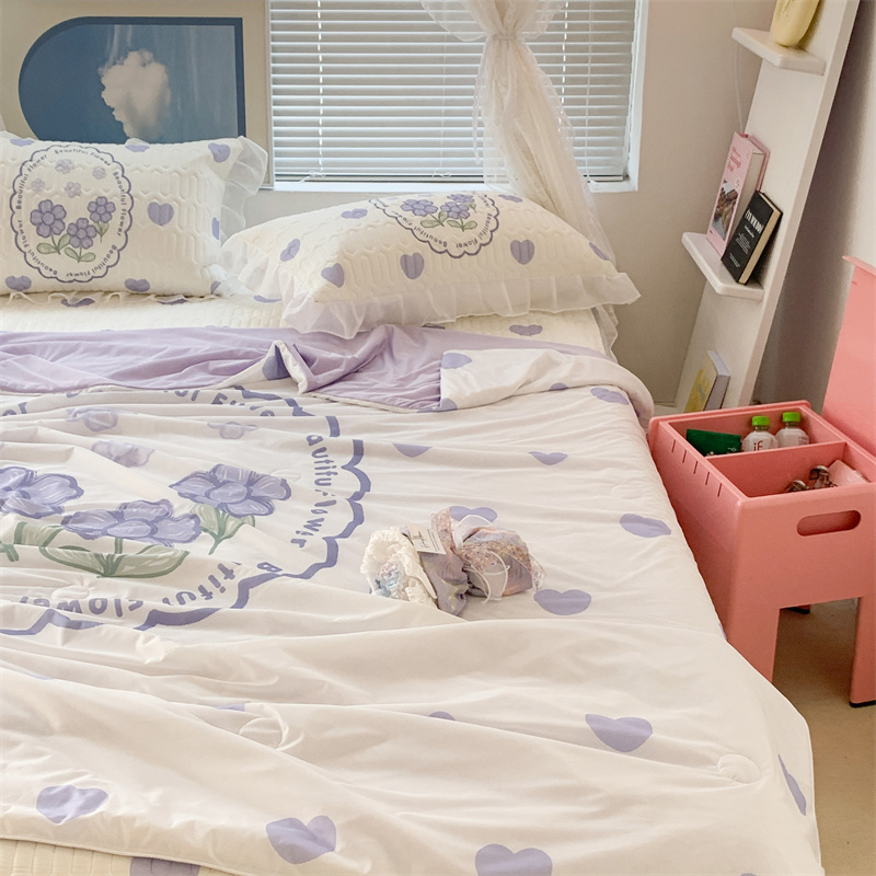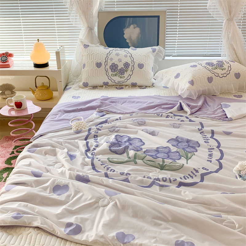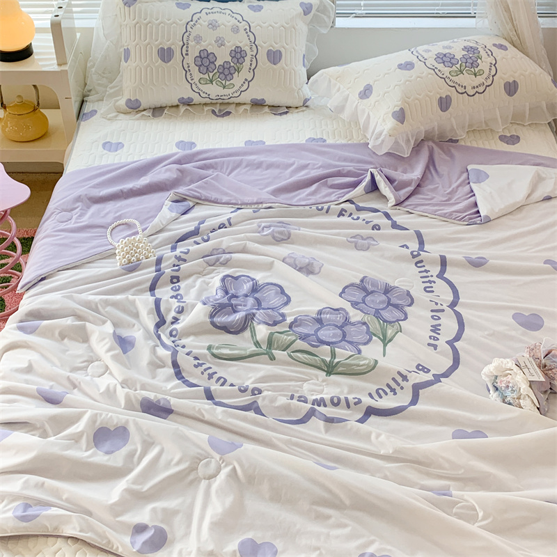 商品名称:昔可 大版数码印花凉感夏被 紫爱心小花朵
