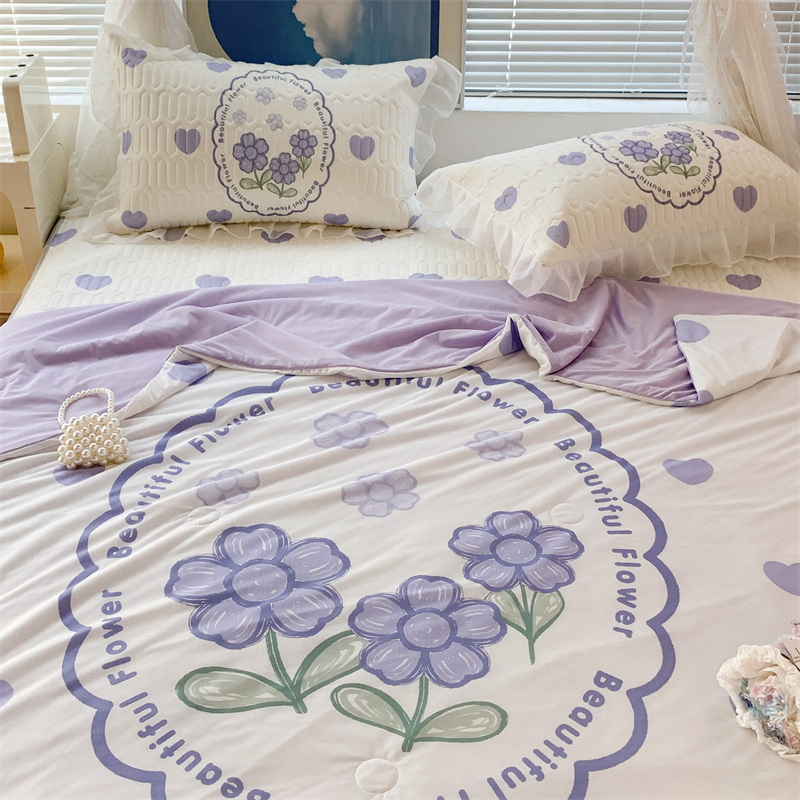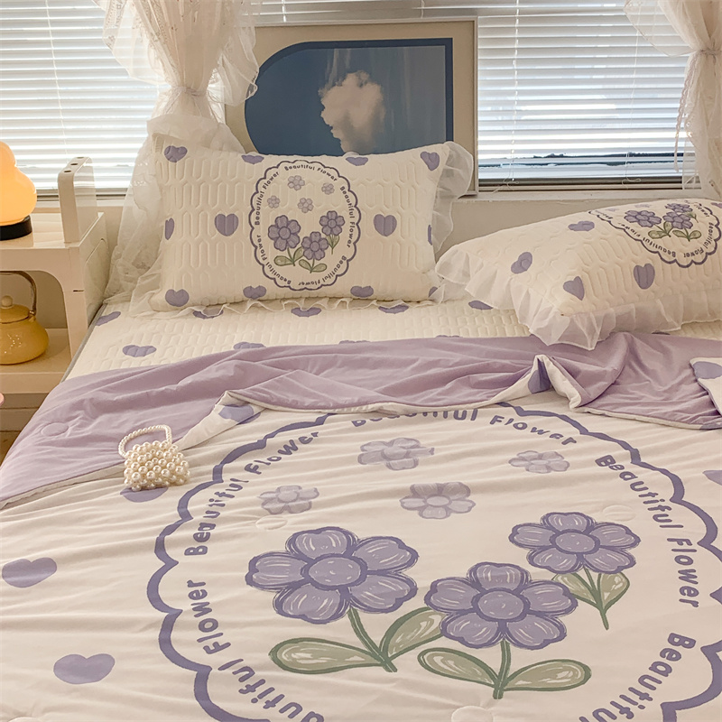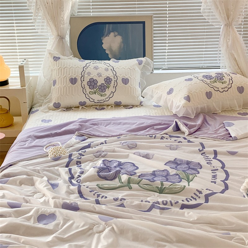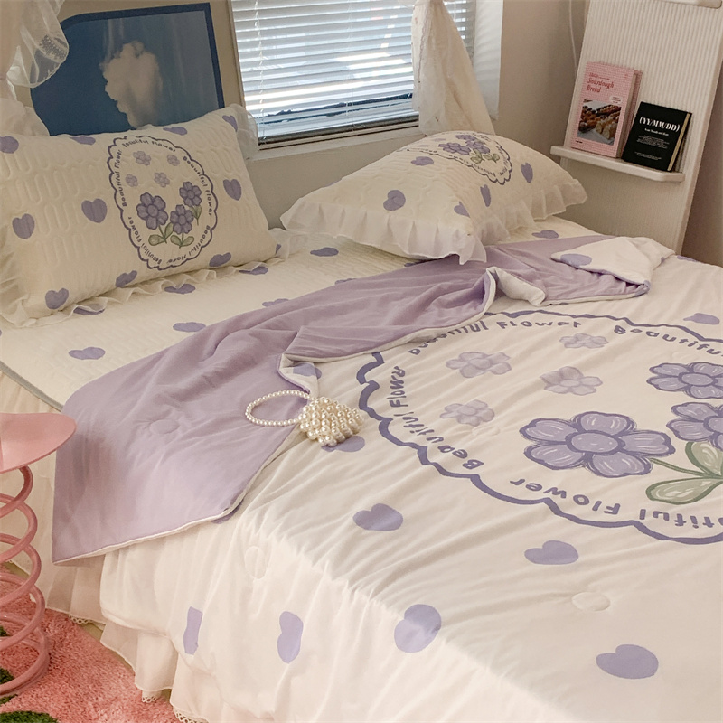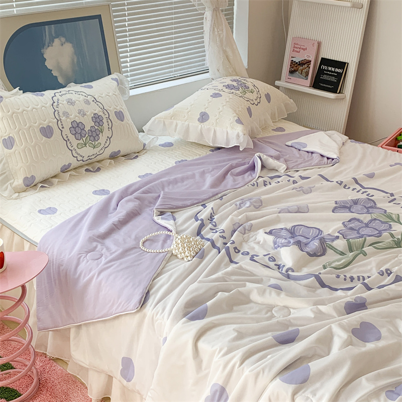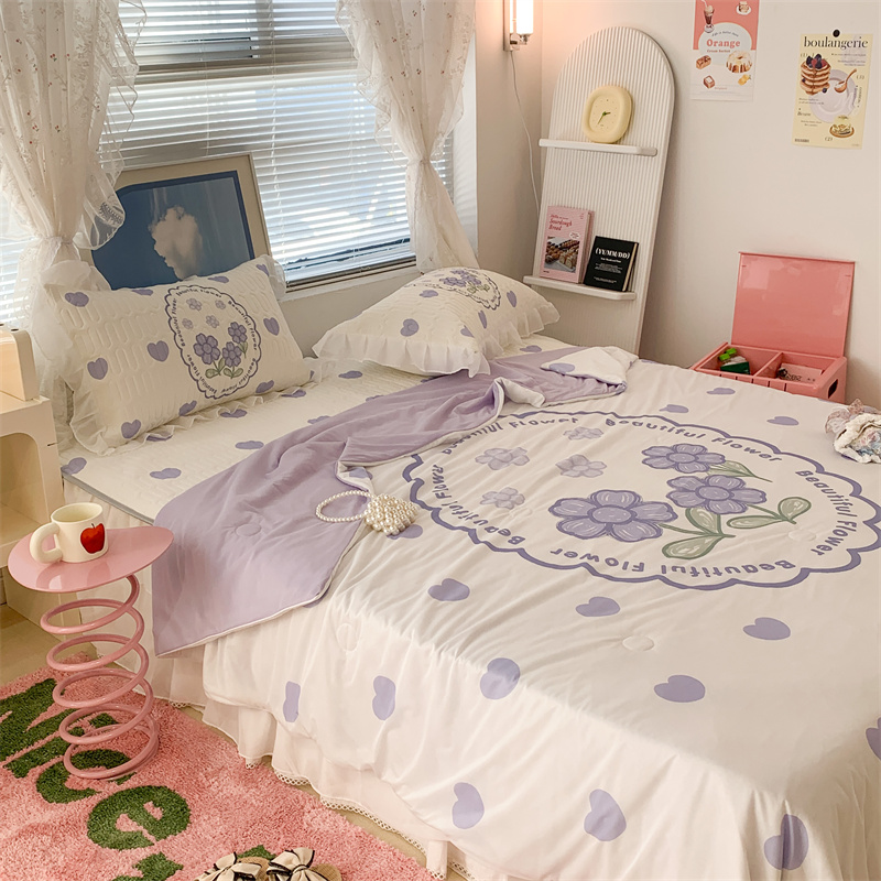 商品名称:昔可 大版数码印花凉感夏被 紫爱心小花朵