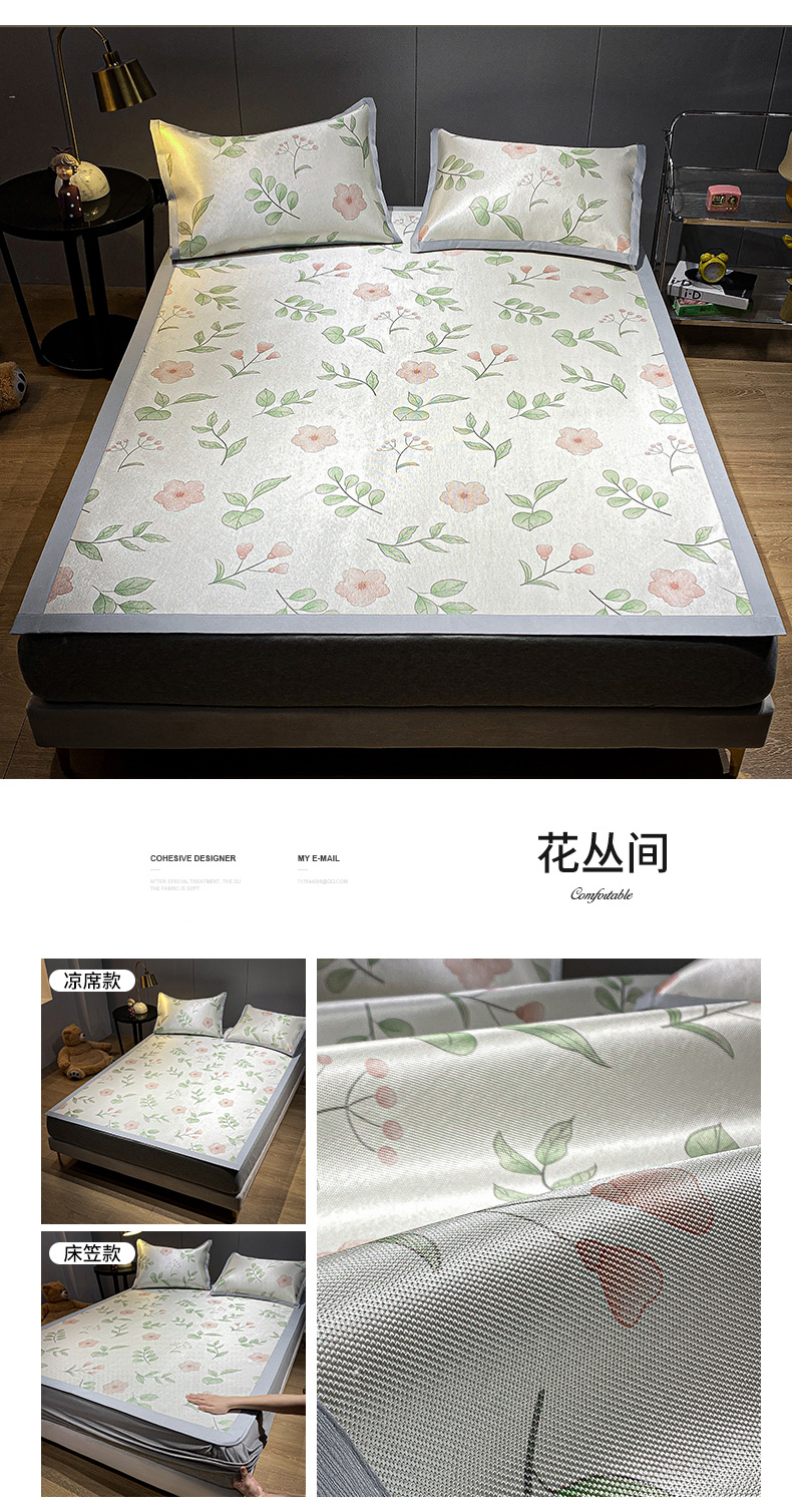 商品名称:安哆啦 A类数码印花冰丝藤席三件套 花丛间