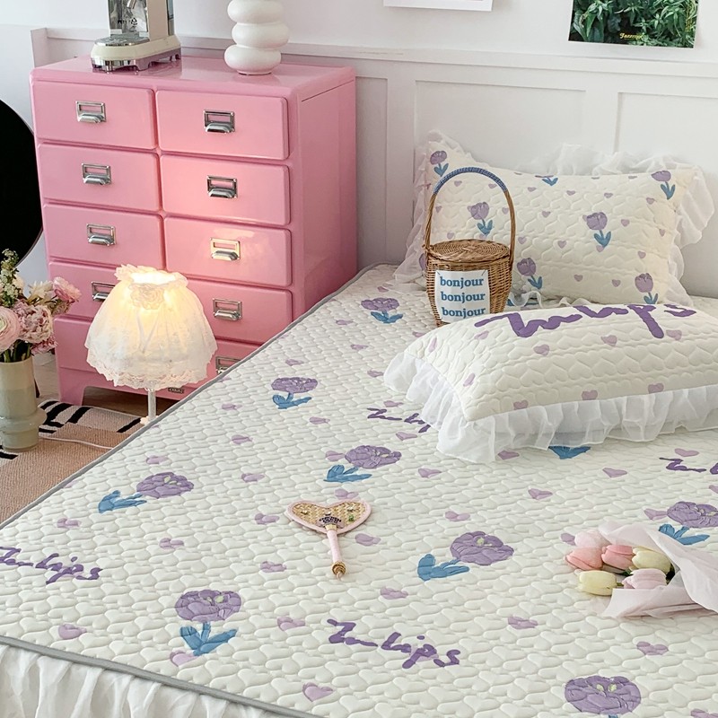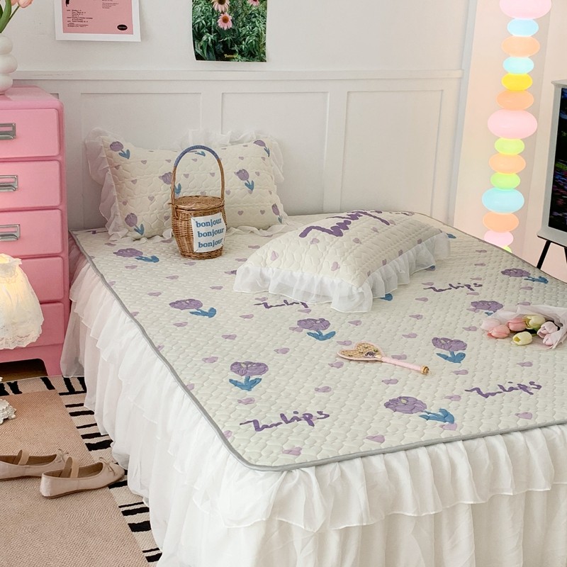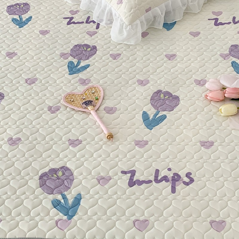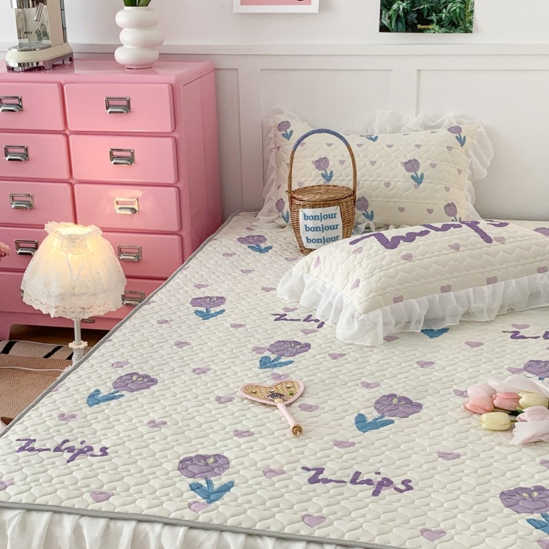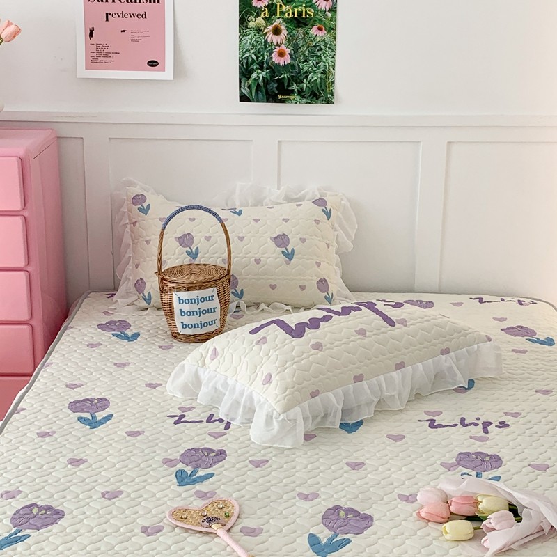 昔可 2023新款第二批双层床裙乳胶三件套 少女碎花风系列 紫色油画郁金香