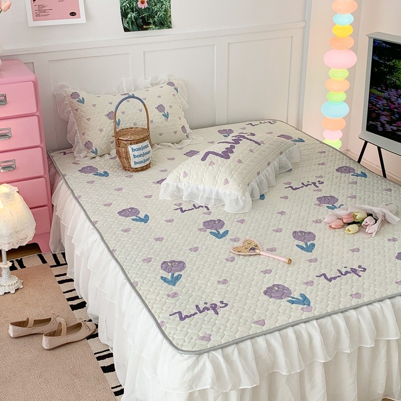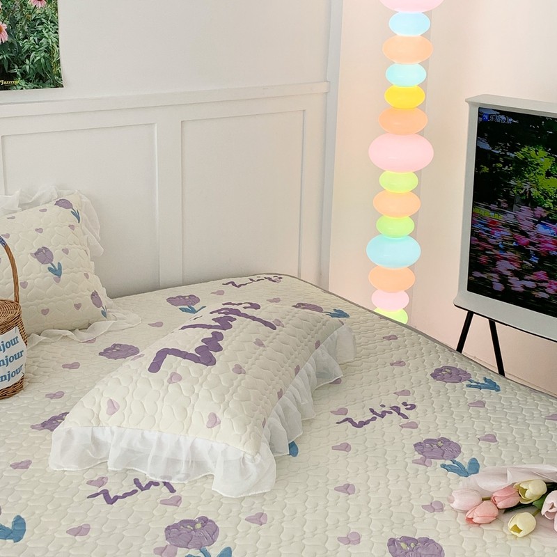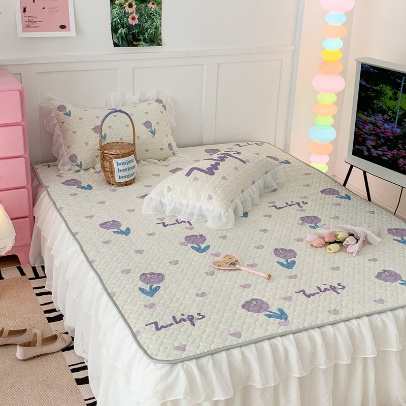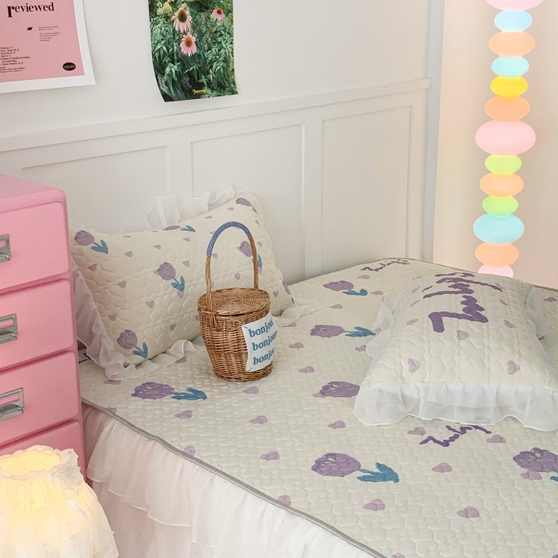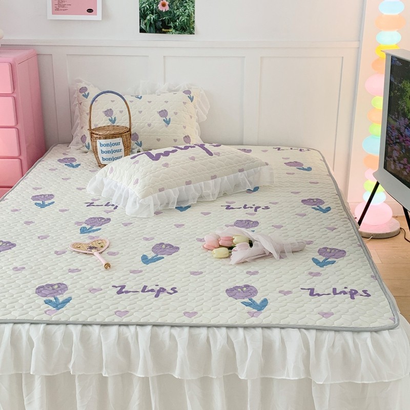 昔可 2023新款第二批双层床裙乳胶三件套 少女碎花风系列 紫色油画郁金香