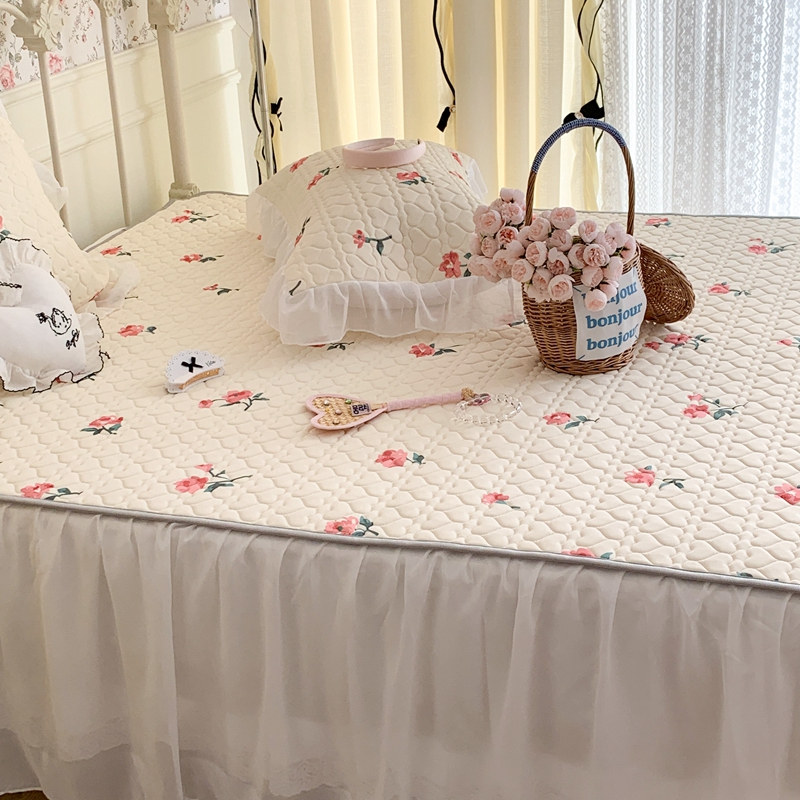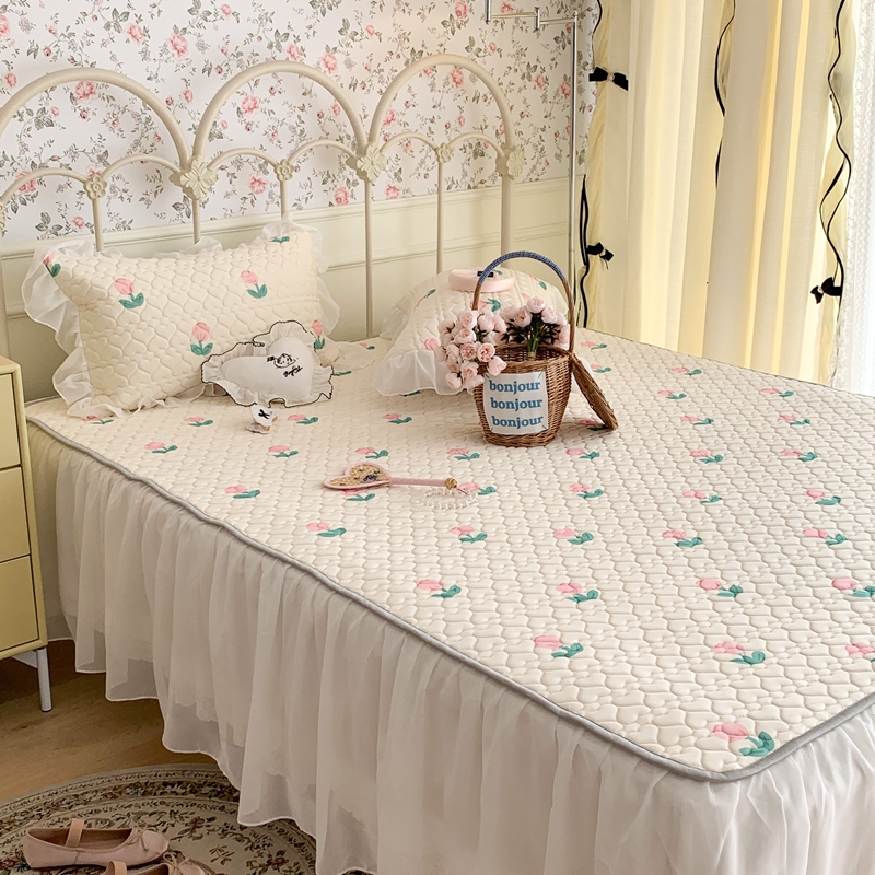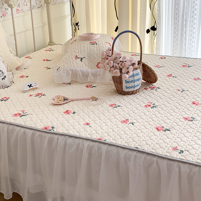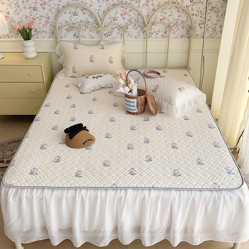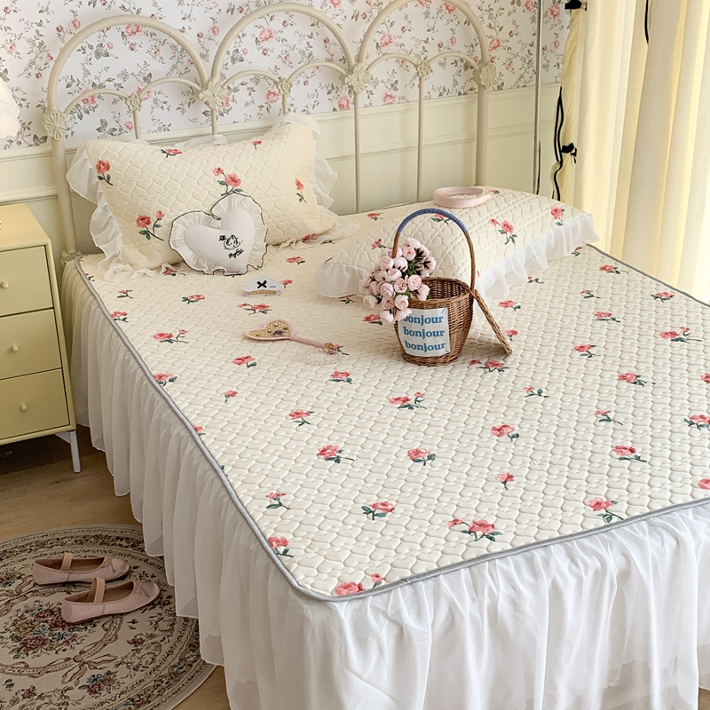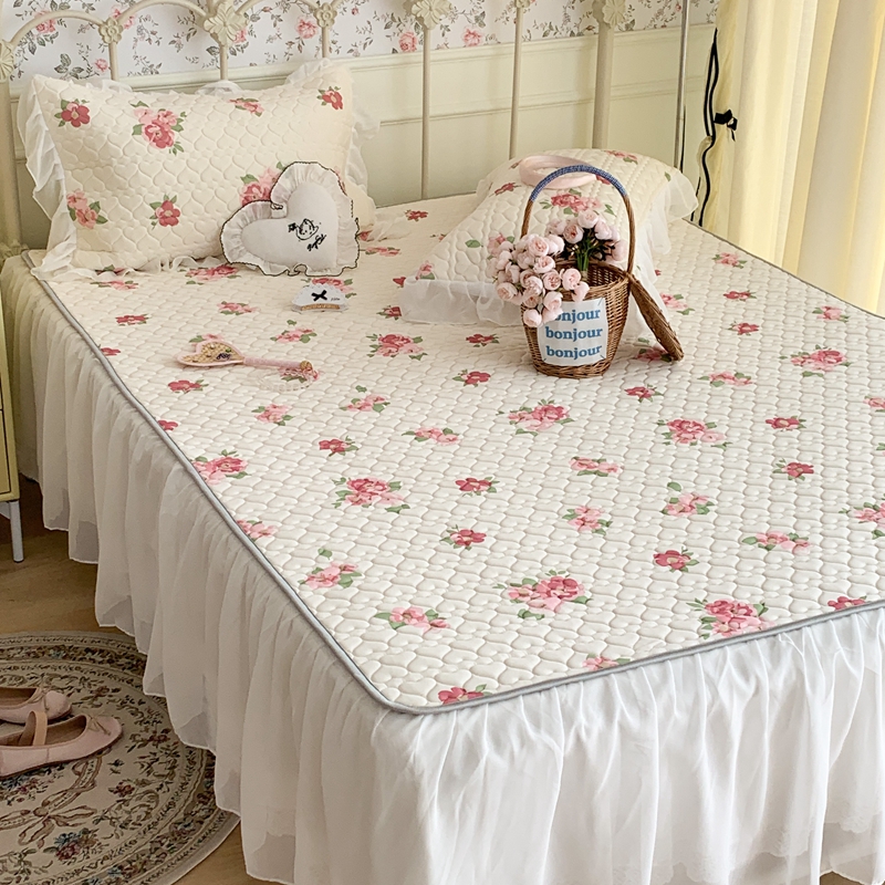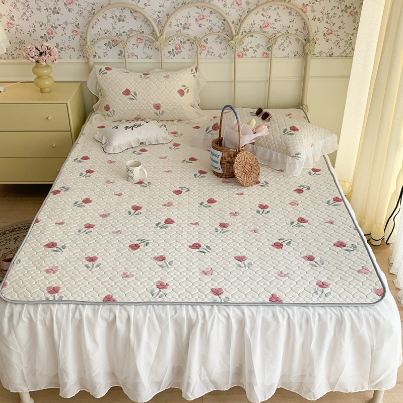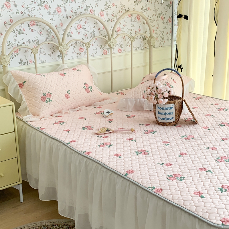 (总)昔可 2023新款单层雪纺花边乳胶凉席三件套