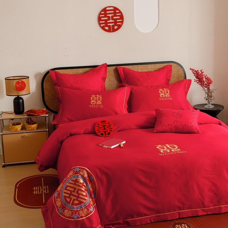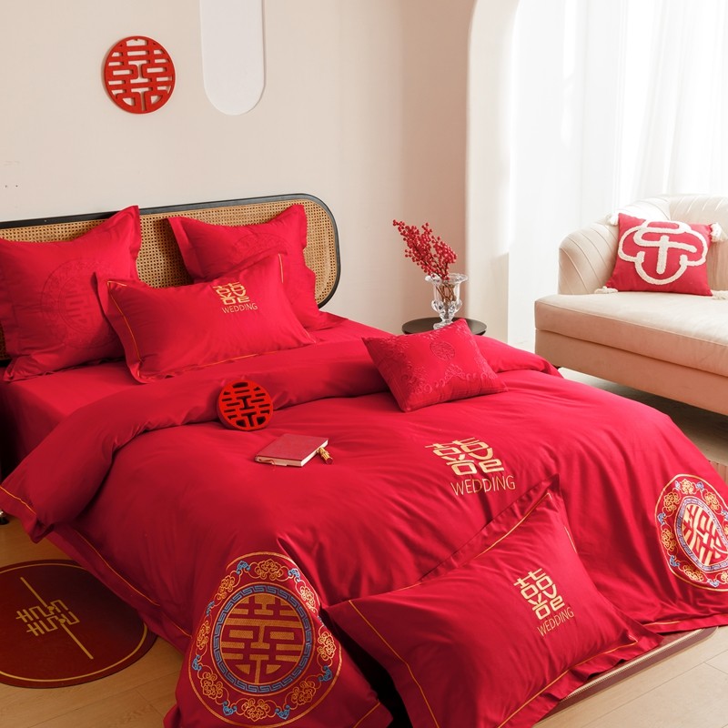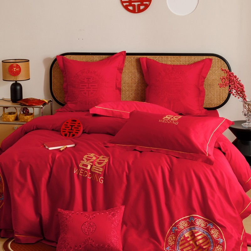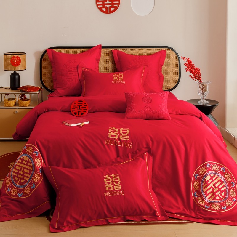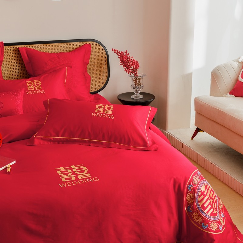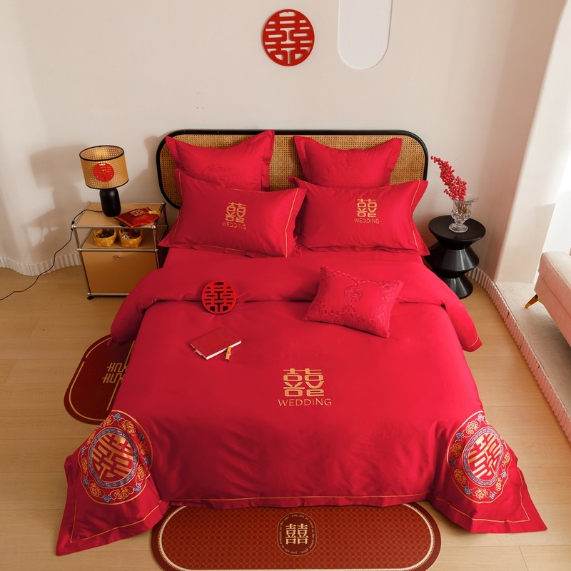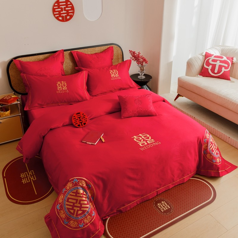 当前位置: 91家纺网 > 商品网购 > 床品套件 > 四件套 > 婚庆四件套 > (总)用心 2023新款长绒棉刺绣婚庆四件套