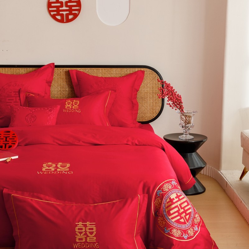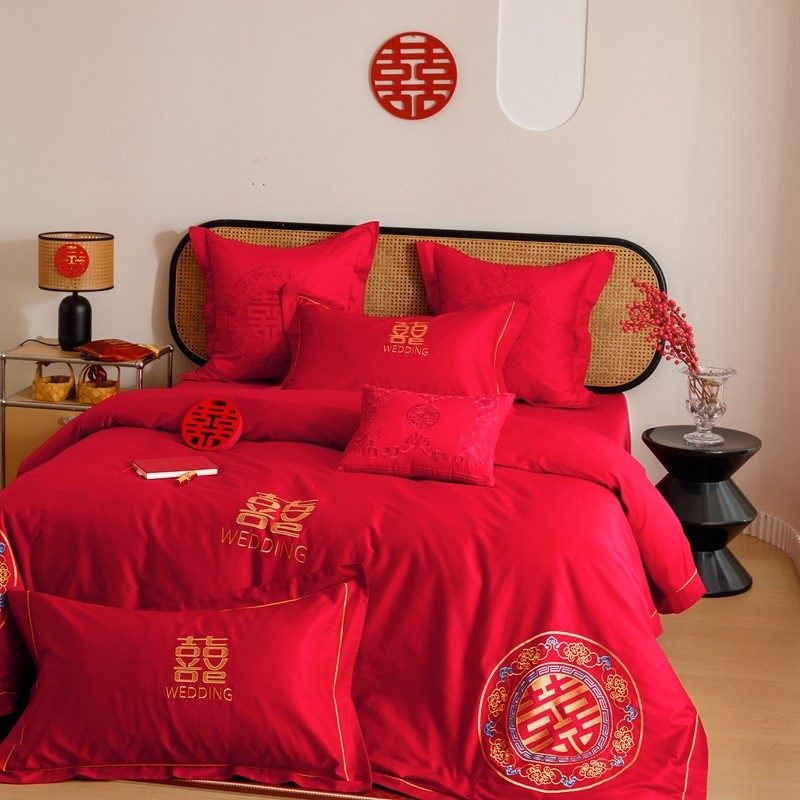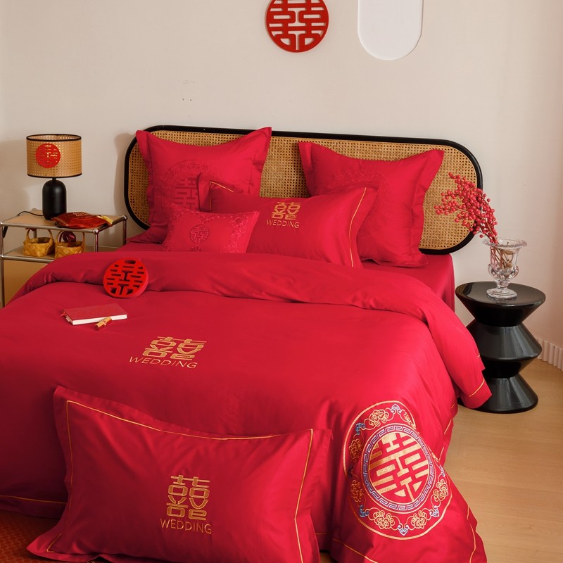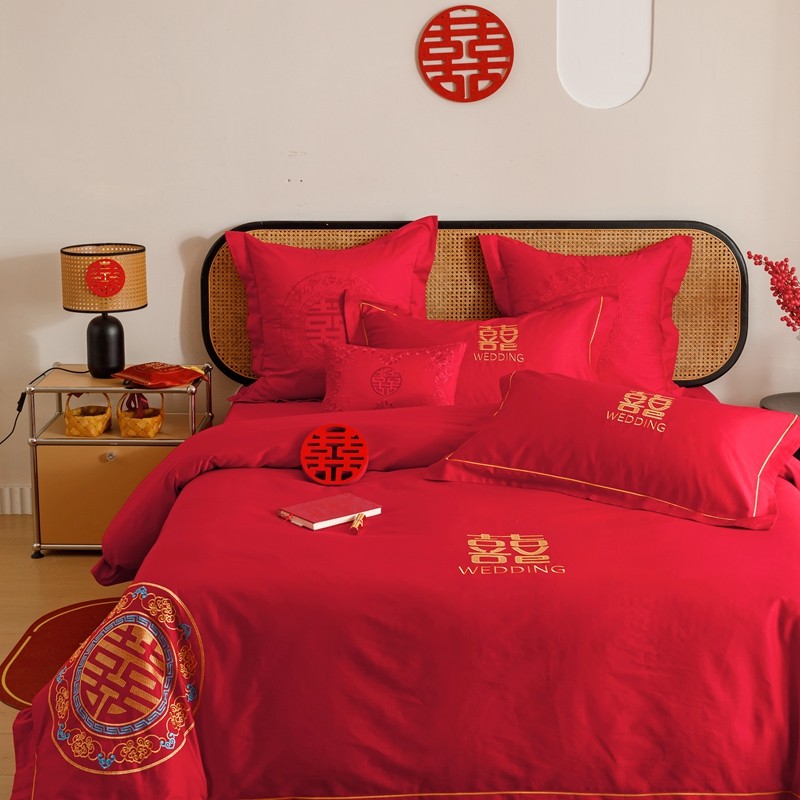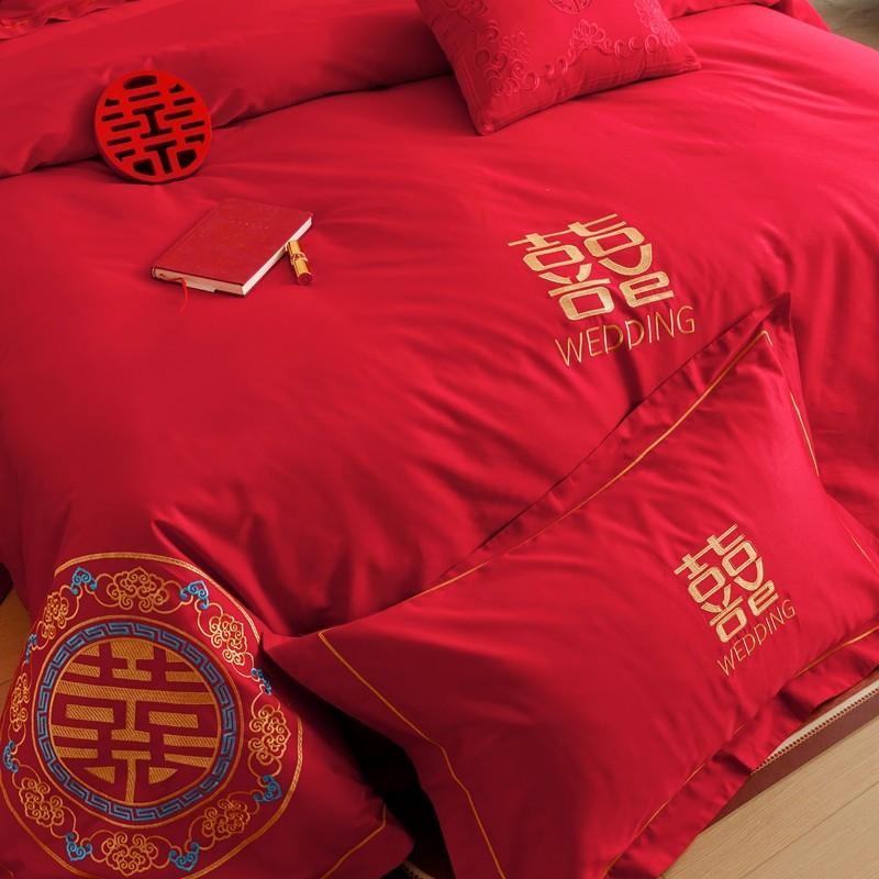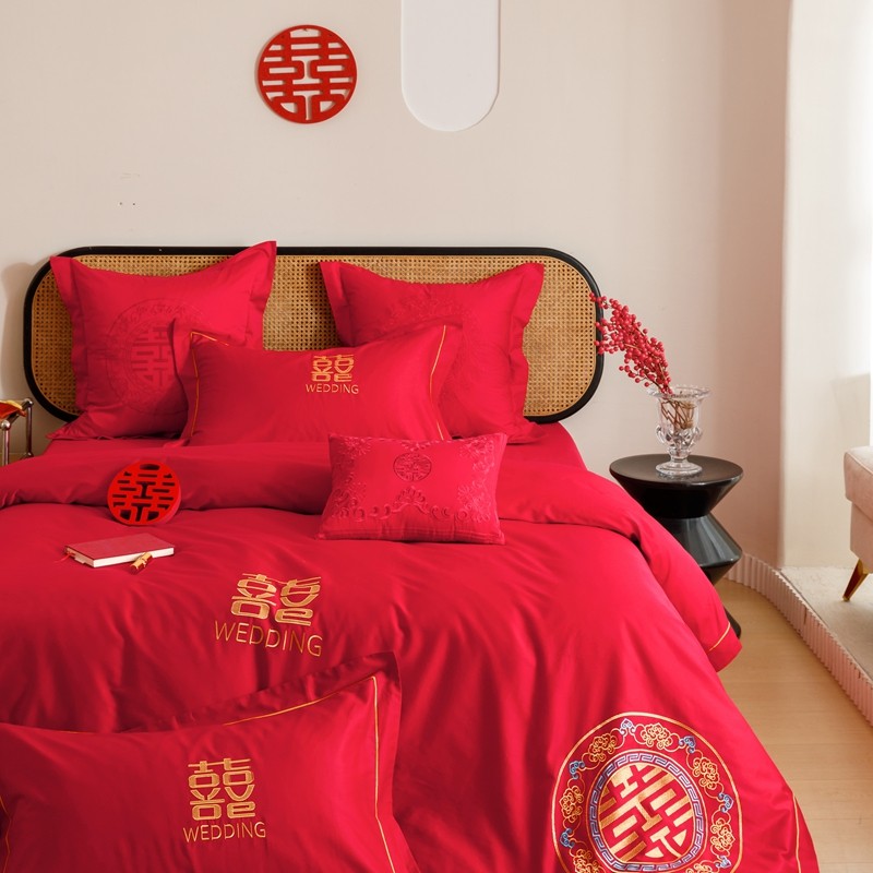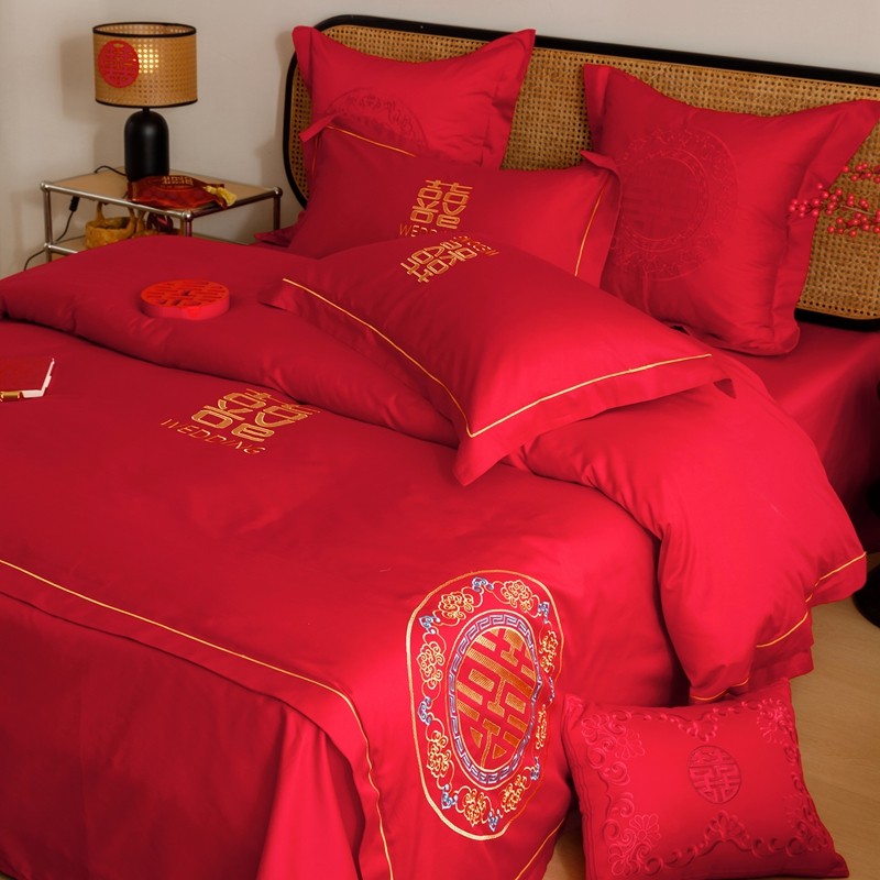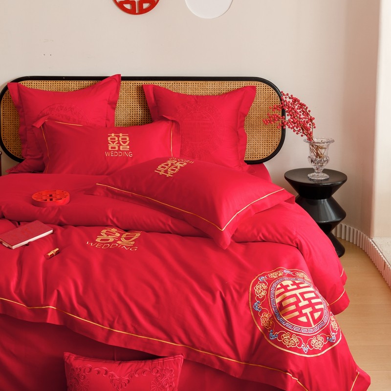 当前位置: 91家纺网 > 商品网购 > 床品套件 > 四件套 > 婚庆四件套 > (总)用心 2023新款长绒棉刺绣婚庆四件套